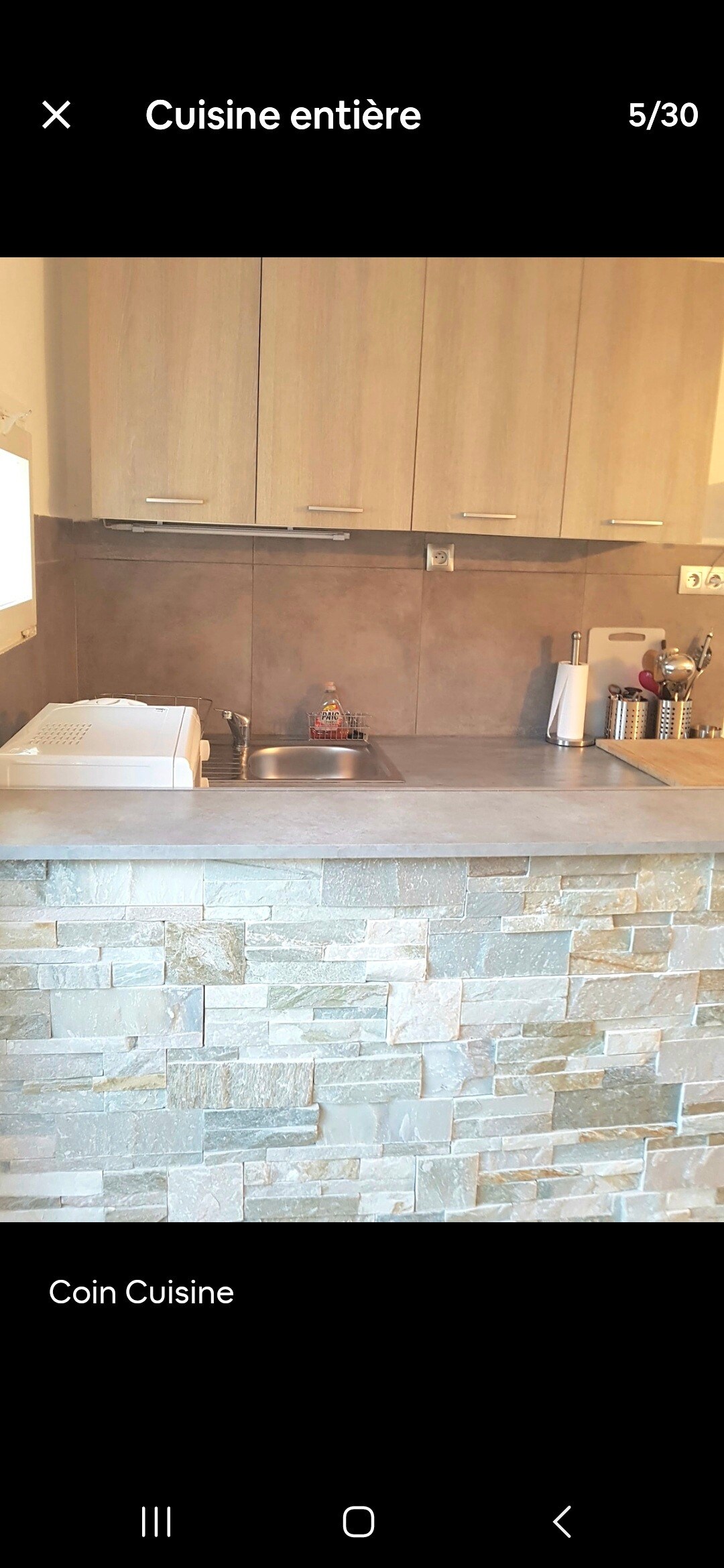 Privé 2** appartement met eigen ingang en directe toegang tot de zee in het zuiden in Solenzara: Appartement met airconditioning van 50 m2 Een woonkamer, een keuken met een wasmachine en een vaatwasser met uitzicht op een eethoek en een woonkamer met een bank met een tv. Een slaapkamer: 1 queensize bed van 160 cm en 1 bed van 90 cm (beddengoed) niet aanwezig ) Badkamer met douche en terras met barbecue met uitzicht op zee met directe toegang tot een klein strand