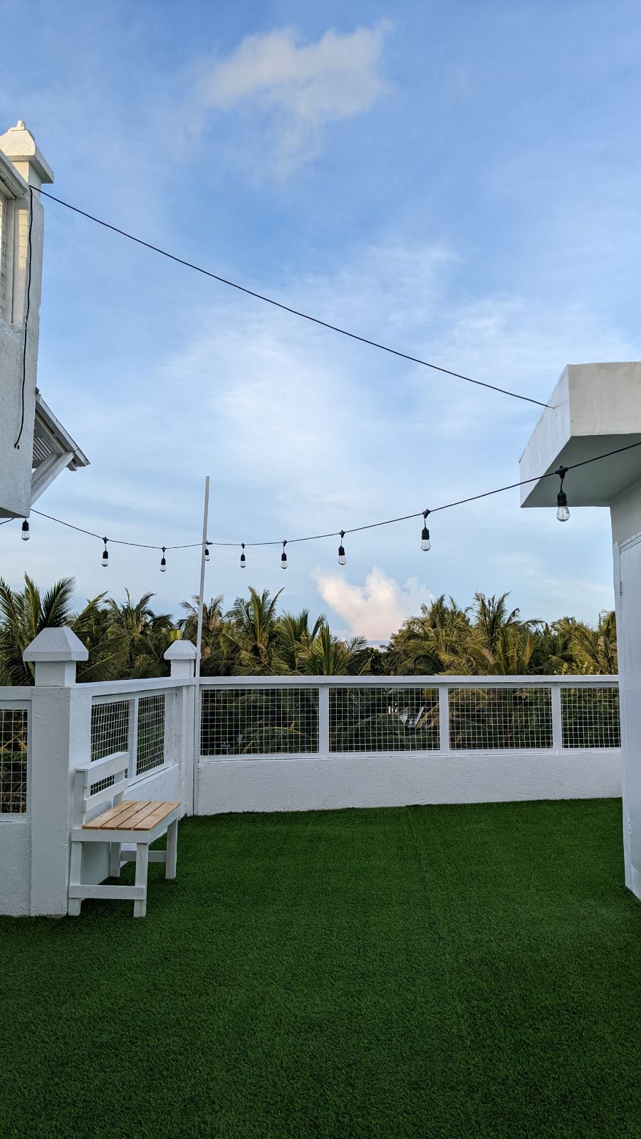 De lichte kamer met terras kijkt uit op een tropische tuin. Je kunt genieten van de oceaan en de horizon met zonsondergang vanaf ons dakterras in de tuin met een romantisch diner. Ongerepte stranden liggen op enkele minuten van onze locatie. De boeking is inclusief gratis ontbijt. Lokale gerechten en visdiners worden op verzoek door onze chef-kok bereid. Je kunt een unieke eilandervaring verwachten in onze duurzame boetiekwoning met slechts 9 kamers/appartementen. We hebben een reservegenerator.