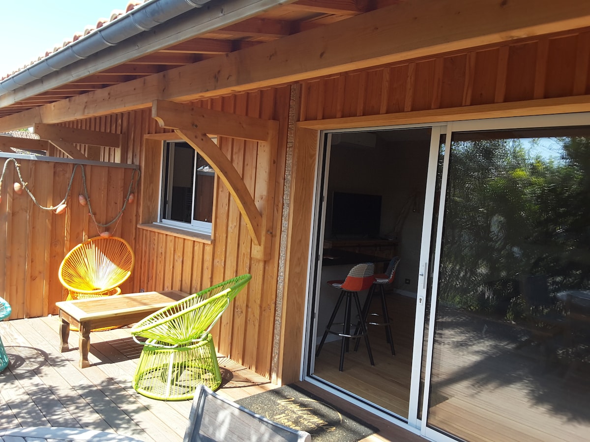 Ben je op zoek naar een rustige en ontspannende plek? Dan ben je hier aan het juiste adres: Ons huisje ligt aan de rand van het bos. Met onafhankelijke toegang en een omheinde tuin geniet je in de zomer van een barbecue onder een sterrenhemel of geniet je van een cocktail in het tuinmeubilair. Wil je verhuizen? - Het eerste zwemmen ligt op 20 minuten afstand (stranden/meer) -Bordeaux is bereikbaar in 30 minuten. - Bereid het aperitief voor, de Pyla duin ligt op slechts 15 minuten afstand om te genieten van een prachtige zonsondergang:)