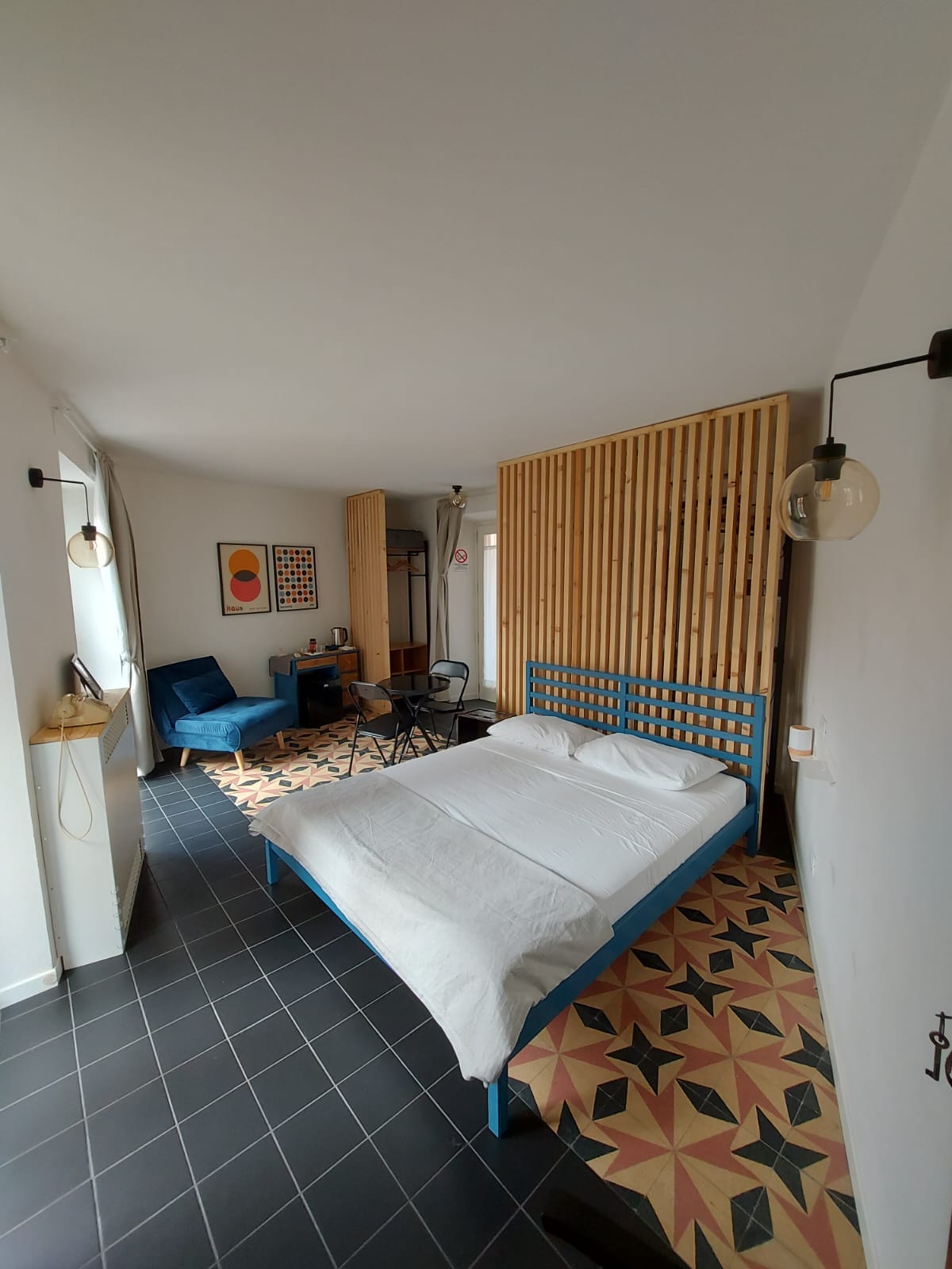 Vivi nel cuore di Ivrea, in un elegante appartamento di 94 mq situato in un edificio storico sulla via pedonale. Tutto a portata di mano: Castello Sabaudo, Piazza di Città e Ospedale sono a 5 minuti a piedi. • 1 ampia camera da letto con travi a vista • Zona relax open-space con divano letto e smart TV (Netflix) • Cucina abitabile attrezzata, con balcone • Wi-Fi veloce, arredamento curato, comfort moderni Perfetto per coppie, lavoratori o famiglie in visita: stile, spazio e posizione top.