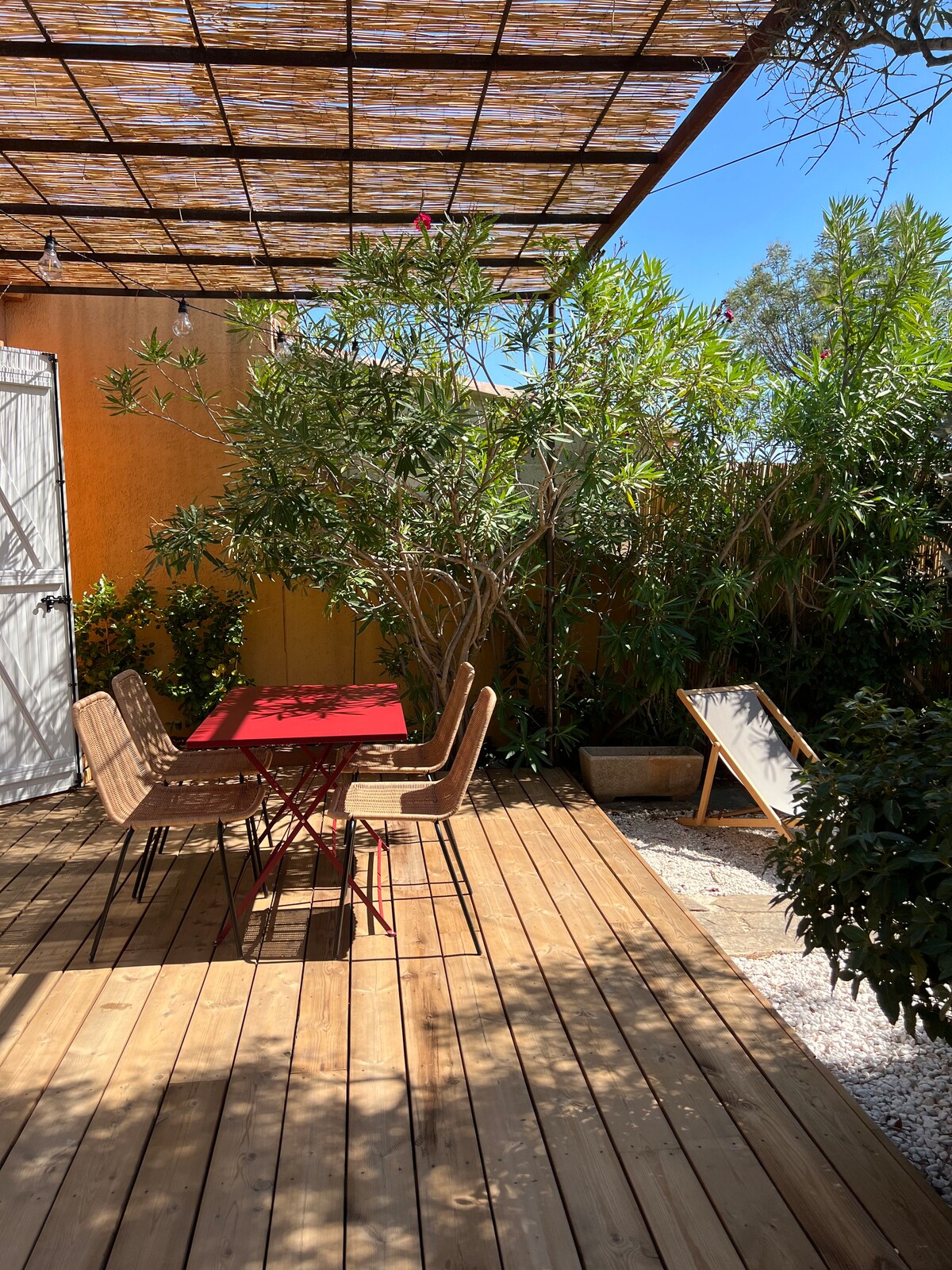 Trakteer jezelf op een onvergetelijk uitje in deze stijlvolle romantische suite Perfect voor een romantisch verblijf, deze plek is ontworpen om charme, comfort en ontspanning te combineren. ✨<B>Je zult het geweldig vinden</B>: 🛁 2-persoons bubbelbad voor ontspannende momenten 🍽️ Volledig uitgeruste keuken 🛏️ Kingsize bed 2m x 2m Ideale 📍 locatie in het hart van La Londe op 2 stappen van winkels, restaurants en het levendige centrum 🌊 Slechts 10 minuten van de stranden van Argentière en 15 minuten van Léoube en Pellegrin