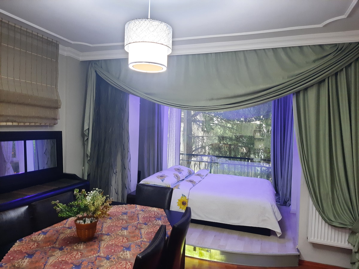 Dit appartement ligt centraal gelegen in Bornova en is gemakkelijk bereikbaar vanaf het kleine park, metro, winkelcentrum, universiteit, luchthaven, enz. op loopafstand van het ziekenhuis. Het appartement is nieuw en alles wat een huis nodig heeft, is beschikbaar.