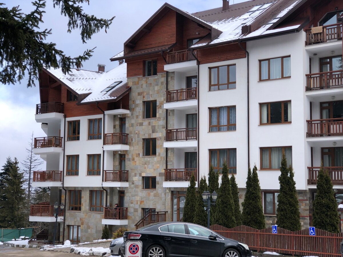 Ons familieappartement 'Borovets Paradise' ligt midden in de populairste skibestemming van Bulgarije - Borovets in Semiramida Gardens, tegenover de heuvels van Hotel Borovets. Wij bieden: - een slaapkamer ( tweepersoonsbed) met prachtig uitzicht over de skipistes - woonkamer met enorme slaapbank met 50inch tv, volledig uitgeruste keuken, twee eenpersoonsbedden - was- en drogermachine. SPA Center SKI in SKI out - 10 min naar de beste skipistes Yastrebets I, II en III inclusief het sneeuwpark!