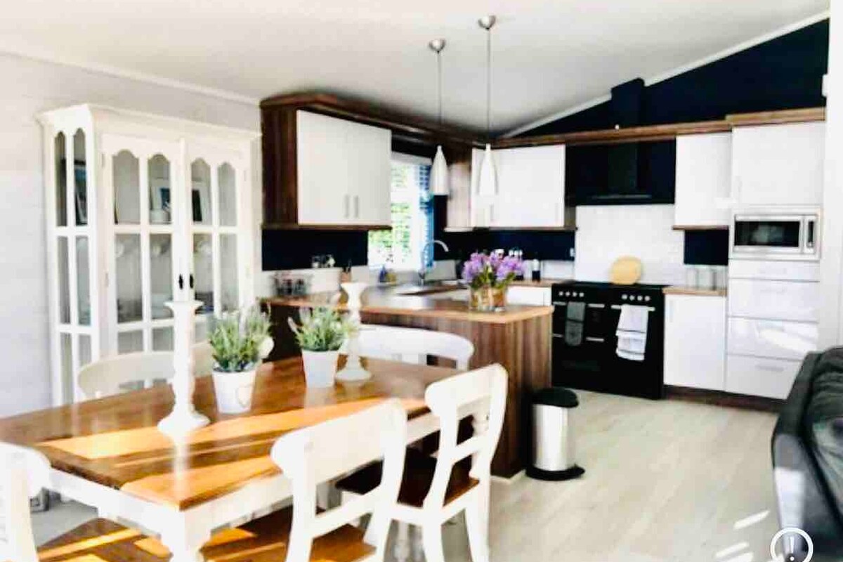 Luxury 3 bedroom lodge for 6 (plus travel cot) with Hot Tub. Located on South Lakeland Leisure Village, a few minutes drive from Junction 35 of the M6, at Carnforth. The lodge has an open plan living/dining and kitchen area. The living area and all 3 bedrooms have smart TV's with Netflix. The master bedroom has a king size bed, walk-In wardrobe and en-suite shower room. 2nd bedroom has 2 single beds and 3rd bedroom has 2 single beds. on-site there is a pub/restaurant looking out onto the lake.