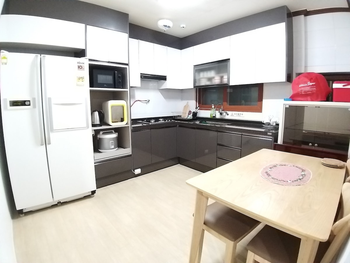 Ontspan met je huisdier in de rustige en ruime gazontuin zonder stadslawaai. Binnen 20 minuten met de auto voel je het luisteren naar de mini-woestijn op het strand (Manipo/Cheonpo/Hakampo, enz.) en Sindu-ri, het enige kustduin in Korea. Je kunt genieten van een rondje op 4 golfbanen (Royal Rings/Solago/Golden Bay/Stone Beach) en je kunt genieten van een wandeling van 3 uur bij Palbongsan, een 8-piek die niet hoog is op 362 m.