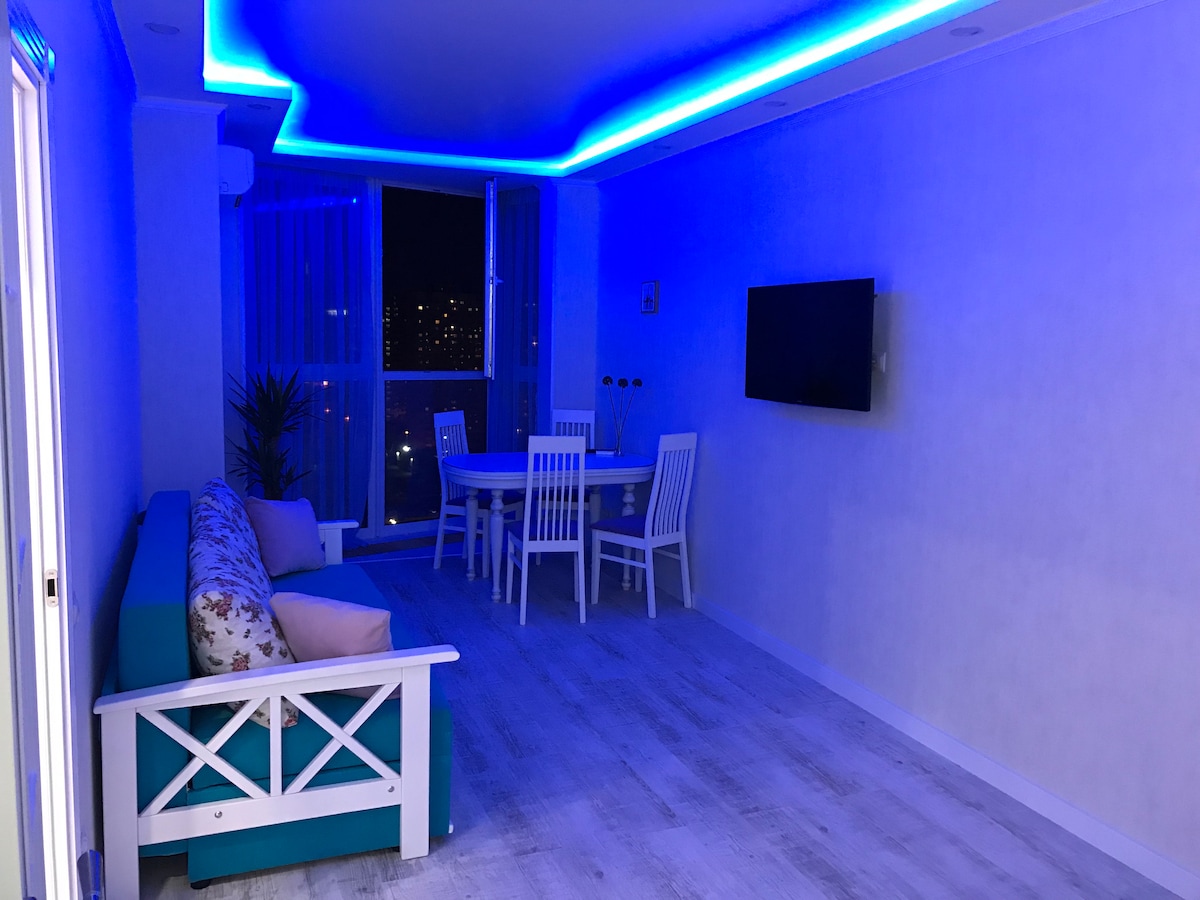 Zonnig en warm appartement, volledig nieuw. Tot de beschikking van de gasten alles wat je nodig hebt. Keukengerei, handdoeken, beddengoed, een haardroger en huishoudelijke apparaten zijn allemaal gloednieuw. Het appartement is gelegen in het centrum van de wijk Rusanovka, een kunstmatig eiland omgeven door water. Een wandeling van vijf minuten langs de oever van de rivier met een groot aantal restaurants met gevarieerde gerechten - Italiaans, Grieks, Amerikaans, Europees, één vis en één ontbijtrestaurant. Het expositiecentrum (IEC-expo) ligt op 15 minuten lopen.