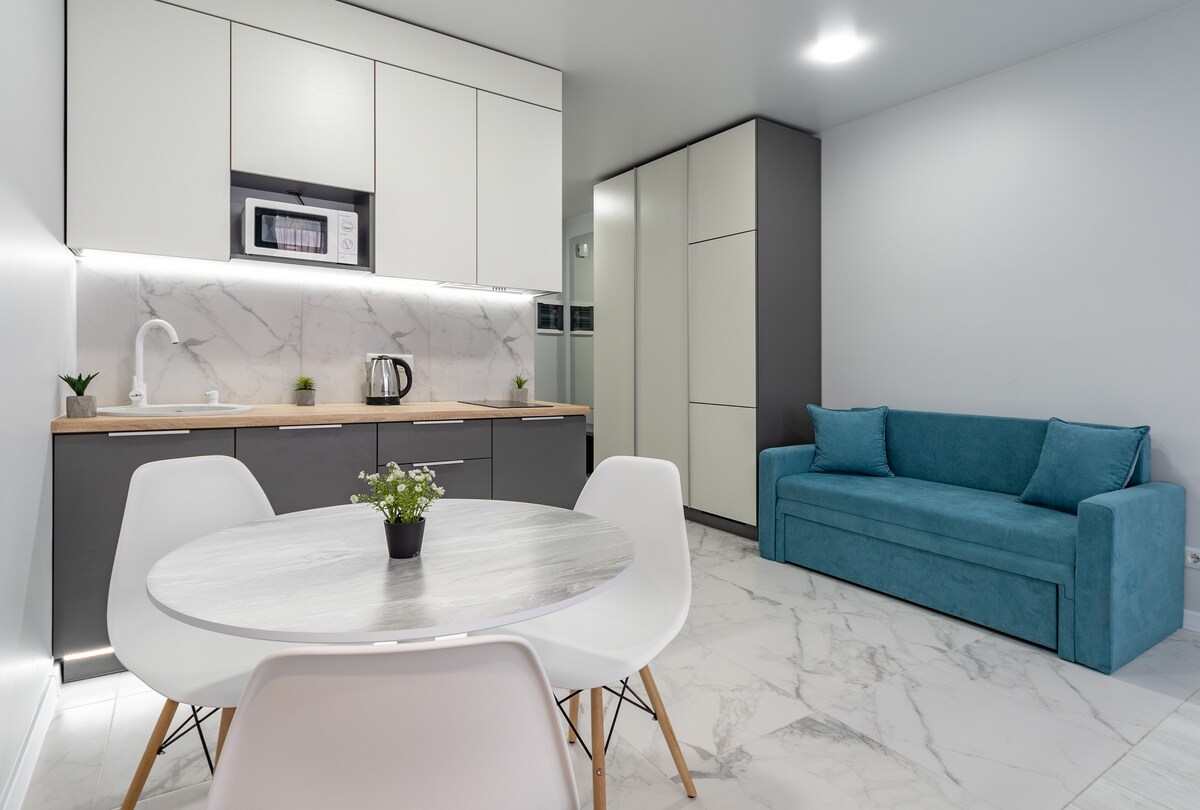 Hallo! Mijn naam is Julia en ik ben blij je te mogen verwelkomen in mijn gloednieuwe designappartementen (32 m ²) in Kiev. Ik ben blij om dit stijlvolle eigentijdse appartement met je te delen met een open indeling, houten oppervlakken en een smaakvolle inrichting. Hier vind je alles wat je nodig hebt voor je verblijf - beddengoed van hoge kwaliteit, haardroger, strijkijzer, badaccessoires en meer. Voel je vrij om je dag te beginnen met een kopje heerlijke koffie of thee naar keuze als een compliment voor je verblijf. Welkom thuis!
