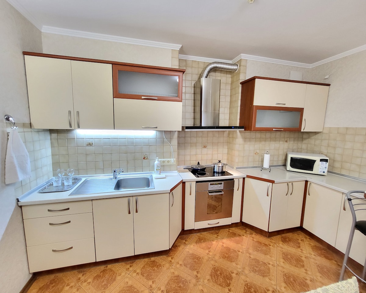Voordelen van het appartement: • Designrenovatie, nieuwe meubels • Gezellige sfeer en vol licht • Volledig uitgerust met huishoudelijke apparaten (wasmachine, elektrisch fornuis, tv, haardroger, strijkijzer, fornuis, magnetron, airconditioning) • Alles wat je nodig hebt voor een comfortabel verblijf: beddengoed, handdoeken, doucheset, wegwerpslippers, paraplu • Snelle wifi