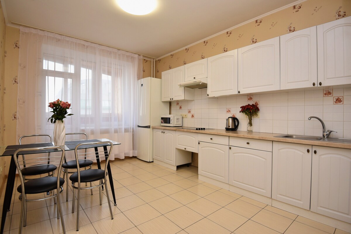 Appartement in een business class huis. Stijlvolle renovatie in lichte kleuren. Uitgerust met alle benodigde apparatuur voor een comfortabele Geweldig voor zowel vakantie als zakenreizen. Het huis heeft drie restaurants (Europese, Italiaanse en mediterrane gerechten); een fitnessruimte; beveiligde parkeerplaats. Aan de overkant van het huis, op 2 minuten lopen, is een grote supermarkt "Novus". Op 5 minuten lopen van het winkelcentrum "Komod", waar een moderne Multiplex-bioscoop is. Het is 200 meter naar het IEC.