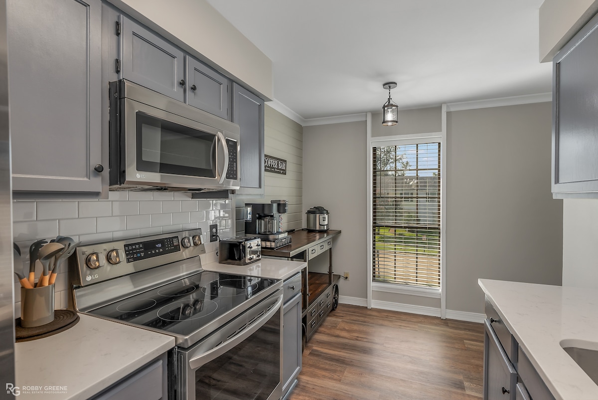 Welkom bij South Bossier! Deze woning ligt op 2 mijl van Barksdale afb en 20 minuten van Shreveport Regional Airport. Perfect voor een vakantie, zakenreis of gezellige thuisbasis tijdens het verkennen van de omgeving. Je zult genieten van de gemakkelijke toegang tot Brookshire 's Arena (1,5 mijl), park, fiets- en wandelpad langs de Red River, restaurants, winkels en nog veel meer! Buiten kunt u genieten in het bubbelbad met loungeruimte en hanglampen die een ontspannen nachtelijke sfeer creëren!