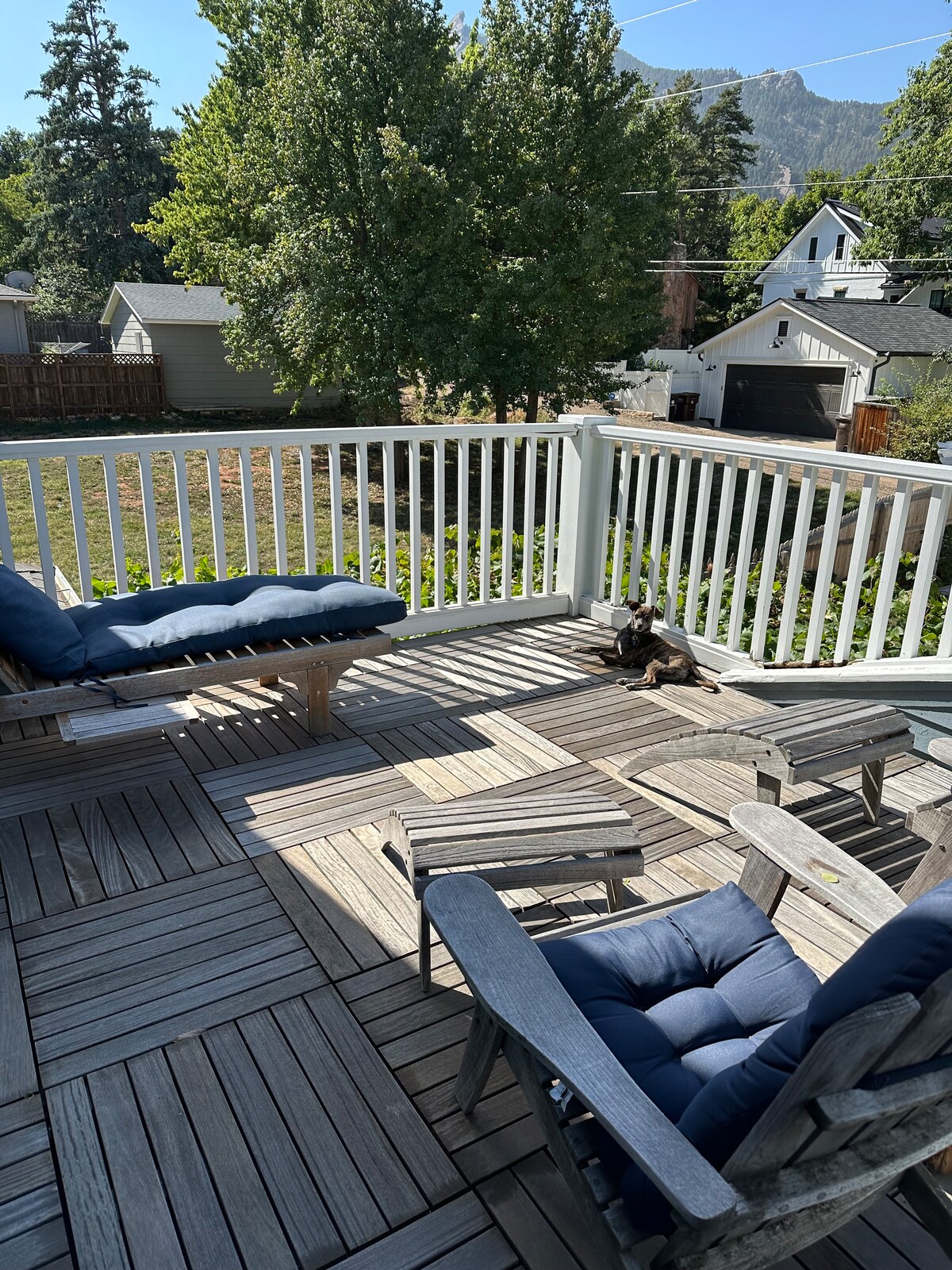 Gardens around my turn-of-the century home offer several locations for outdoor dining and relaxing with WIFI. You are welcome to the greens, tomatoes, squashes and herbs. Walk to parks, restaurants, bookstores, cafes, gallery, music, pool, cidery & breweries. Bike/bus town or to Boulder. Drive 30 miles to Denver or Rocky Mt. National Park. Sleep on Tempur-Pedic mattress set. There's a half flight of stairs to basement apartment. AX3200 router, tri-band 7-stream wifi 6 on a 2.5 GHz port.