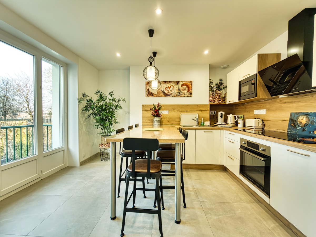 Appartement van 66 m2, ingericht met curiosa, vintage en elementen geïnspireerd door de Harry Potter-wereld ✨ ~>2 slaapkamers met kleedkamers. Inclusief een met een direct uitzicht op de basiliek ~>Lichte badkamer, bad/douche, dubbele wastafel, met handdoeken en haardroger, stijltang, droger ~>Een gezellige woonkamer met 2 banken, met zijn grote bibliotheek en nep open haard, een grote eettafel. ~> Volledige keuken (koffie, thee aangeboden) ~> Verrassingsmand vanaf 2 nachten.