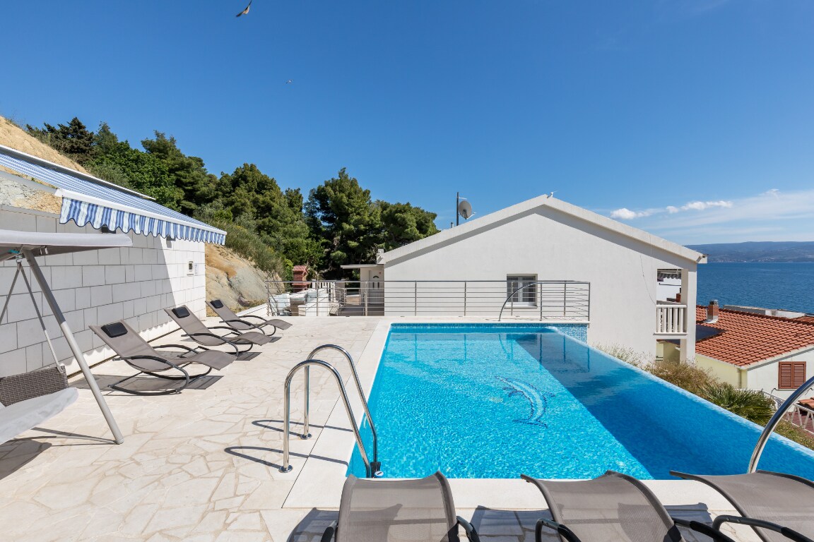 Beachfront villa Bela: heated pool& jacuzzi& sauna