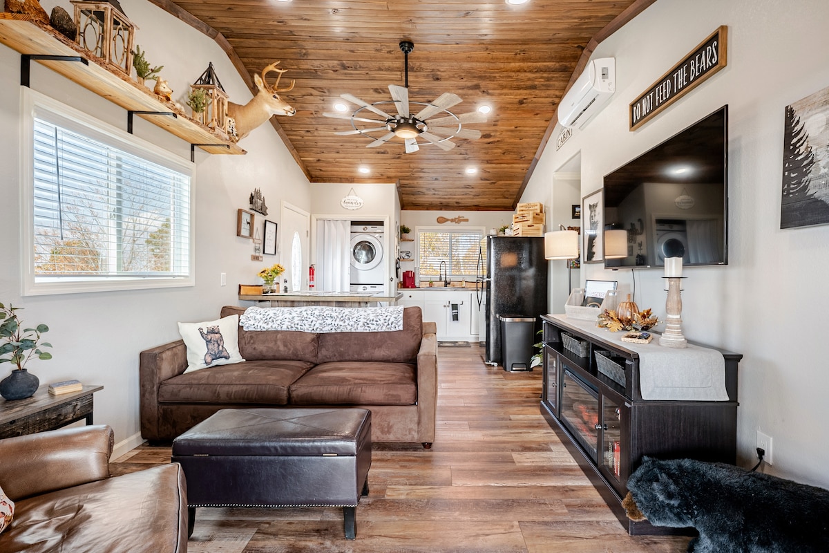 Welcome to The Fiddler’s Hooch House, your perfect retreat nestled in the serene beauty of Ocoee, TN. This cozy cabin offers everything you need for a relaxing getaway, whether you’re here to explore the great outdoors or simply unwind. The cabin features one charming bedroom as well as additional sleeping options in the living room with a pull-out sofa and loft areas with floor mattresses. High-speed internet, washer and dryer, large 75" LED television, and a well-equipped kitchen.
