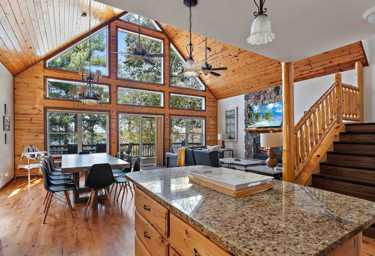 Escape to Leisure Lodge, 2 hrs from MSP or Fargo: • 4 king beds, 4 Twin XLs, pullout queen, portable crib • 3 baths (one on each level) • Fully stocked kitchen w/ indoor & outdoor dining for 10+ • Spacious year-round home with indoor garage parking, not a seasonal cabin • Hot tub + fire pit w/ wood • Paddleboat, kayaks & nearby trails • Cozy gas fireplace & crisp lake views • 120+ five ⭐️ reviews •Decorated w/ indoor lighted trees throughout the winter for groups to celebrate holidays