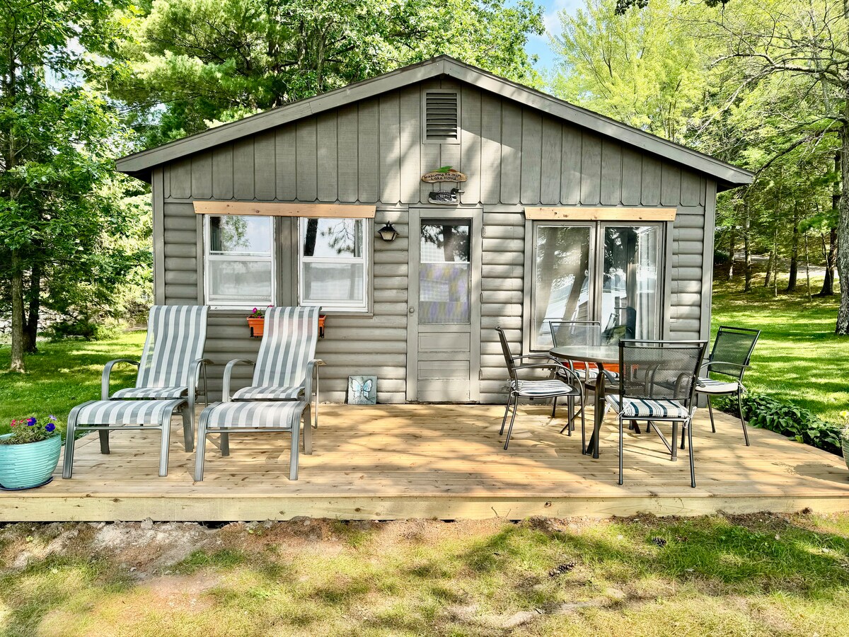 Privéhuisje met queensize bed + meren, golfen, enz.