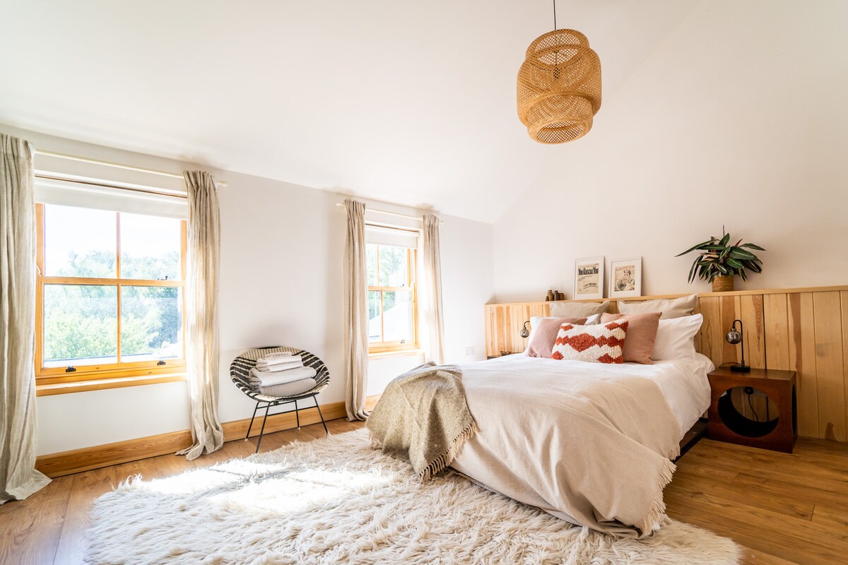 SELF-CONTAINED and BRAND NEW (Oct 2020) studio annex (attached to stunning home) with OWN SEPARATE ENTRANCE. Imagine the comfort and style of a 5* boutique hotel, with the cosiness and relaxed feel of home... FEAT: *ENHANCED CLEANING *Brand new luxury KING SIZE bed *Stunning luxury ensuite w/ walk-in dbl shower *Enormous freestanding bath *Underfloor heating *Wifi *55" TV *Complimentary Netflix *Desk *Hotel-style "kitchenette" w/ microwave; mini fridge; kettle, teas & Nespresso *Table & chairs