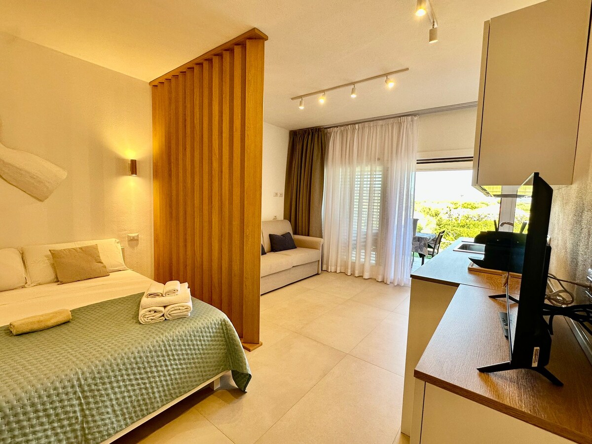 De suite is gelegen in het Monte Contros-gebied van Porto San Paolo, vanwaar je kunt genieten van een panoramisch uitzicht over de zee. De suite bestaat uit een slaapkamer met tweepersoonsbed, een eigen badkamer en een verzorgde tuin waarin de hottub zich voor exclusief gebruik bevindt. De accommodatie is volledig onafhankelijk. Elk detail is samengesteld om een pure, afleidingvrije visuele ervaring te creëren die een gevoel van onmiddellijke ontspanning geeft als in een oase van rust.