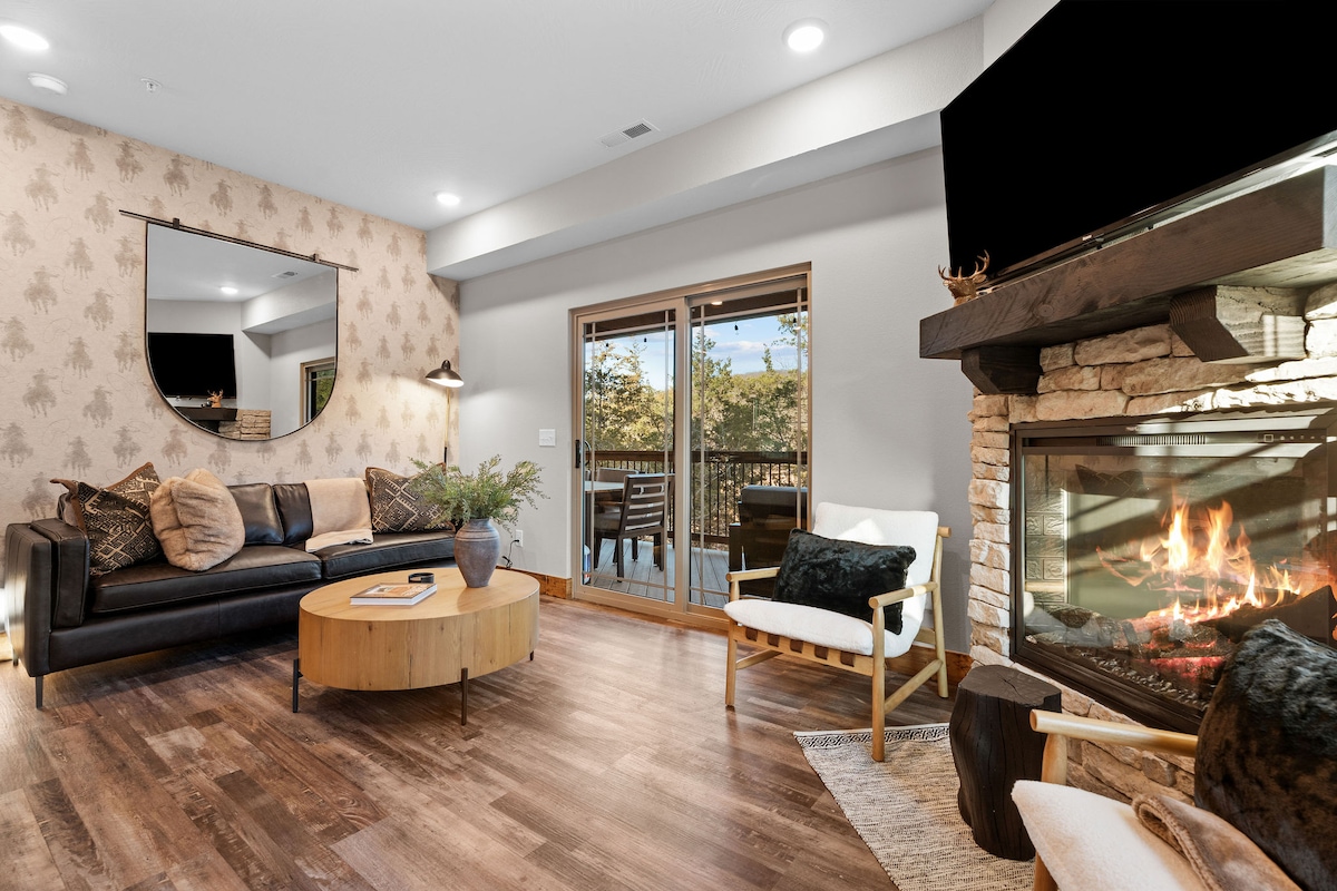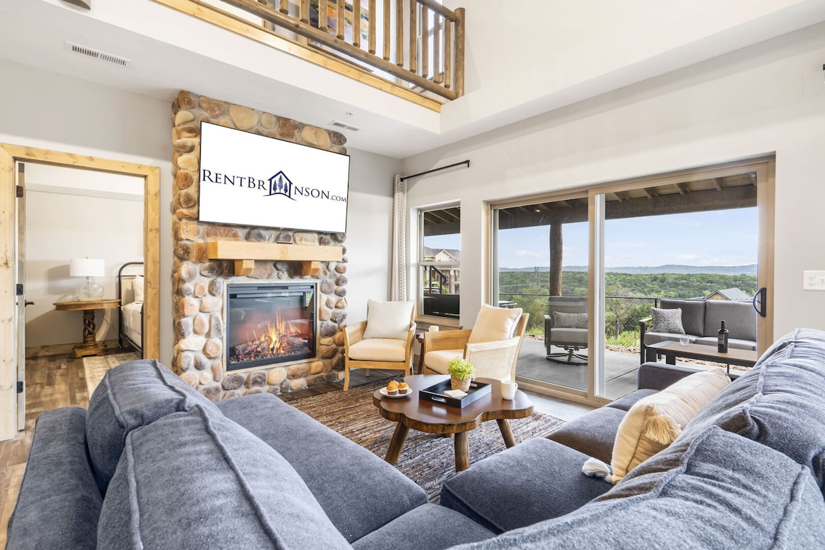 De lente en zomer roepen! 🌞 Deze moderne bergretraite op Indian Point ligt op enkele minuten van Silver Dollar City en biedt sensatie overdag en ontspanning 's nachts: een eigen hot tub, drie open haarden en een prachtig uitzicht op de Ozark. Gezinnen, creatievelingen, zakelijke teams - iedereen wint. Ga naar het park of het meer en kijk dan naar de sterren bij het vuur. Topdatums verdwijnen snel. Boek nu je epische uitje. 🔥