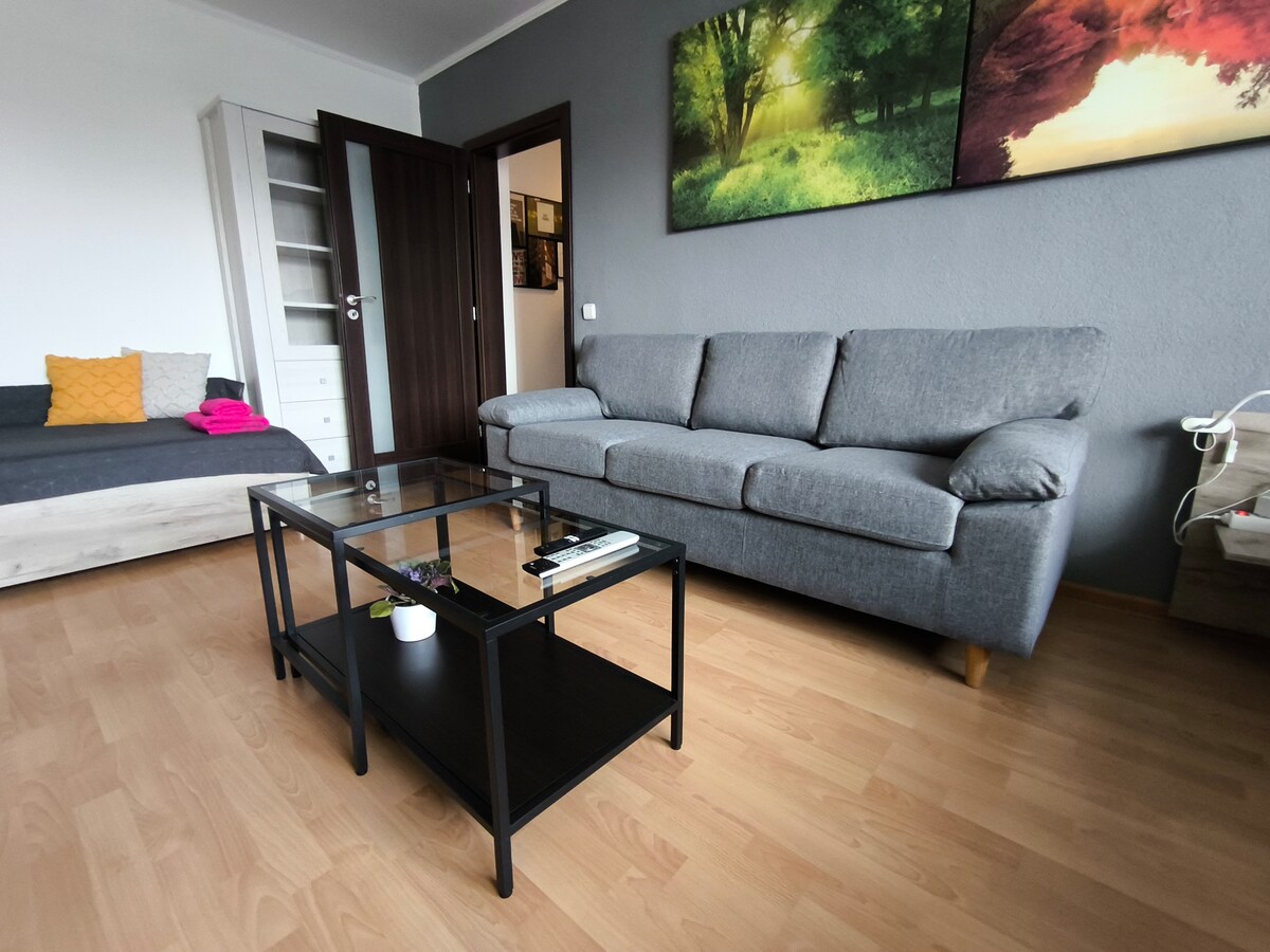Eenkamerappartement ligt op loopafstand van veel restaurants, clubs en bezienswaardigheden van Bratislava (bijv. het centrale plein, het historische operahuis, het oude stadhuis). Gemakkelijke toegang tot de stad vanaf nabijgelegen openbaar vervoer stations. Volledig uitgeruste keuken met keukengerei en basiskookgerei. Uitklapbaar queensize bed. Opvouwbare bank (comfortabel geschikt voor één persoon). Badkamer met bad. Beddengoed en handdoeken aanwezig.