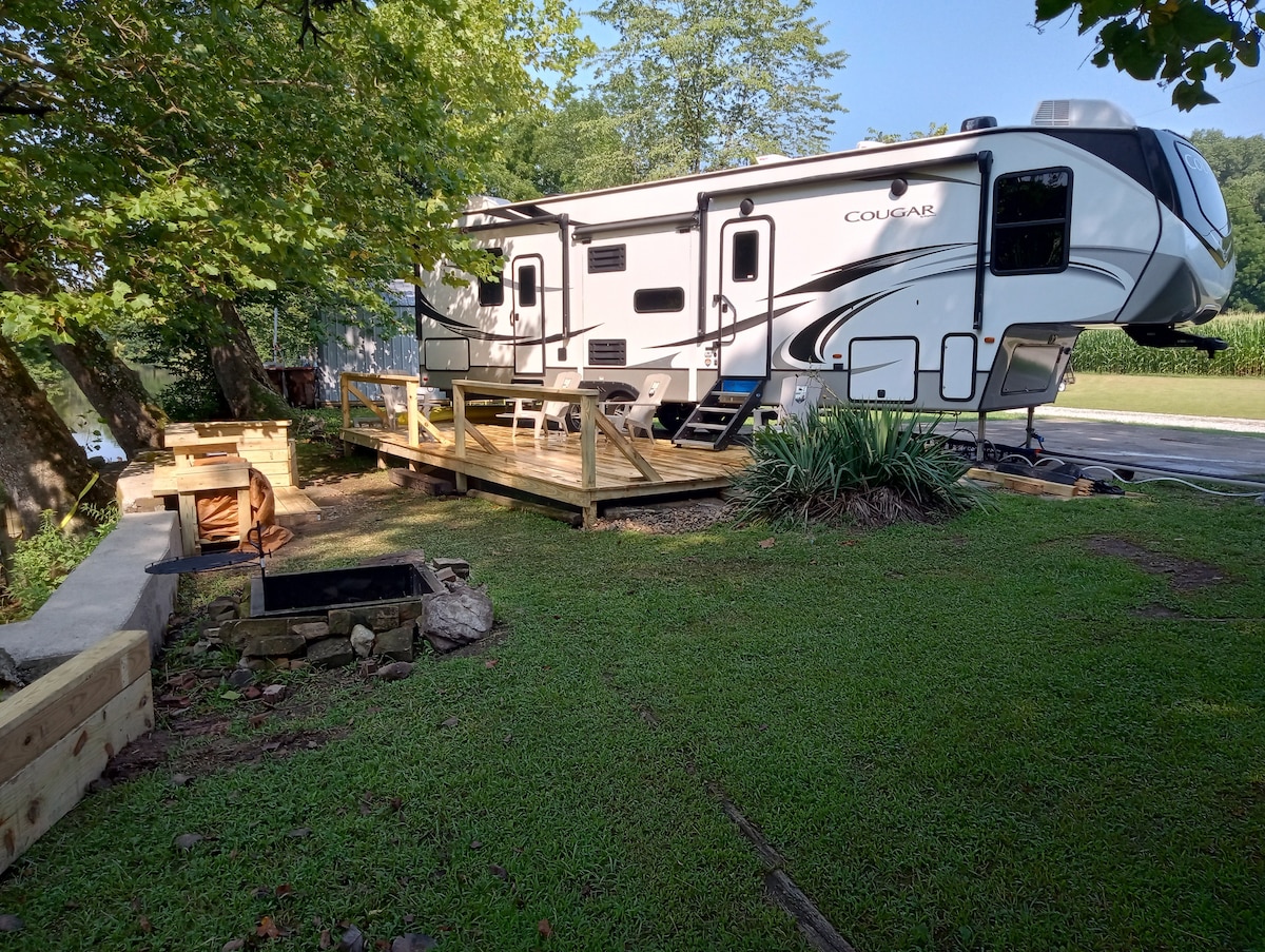 This home is situated on the river, offering a private setting with quick access to other amenities. It’s only 5 miles to I70, 3 miles to Indiana State University, 7 miles to Rose-Hulman Institute of Technology, and 6 miles to Saint Mary-of-the-Woods College. It’s also just half a mile away from The Landing. The home features a full kitchen, a living room, two bedrooms, and two full bathrooms. There’s also upgraded WiFi and a 58-inch Smart TV with basic cable in the living room.