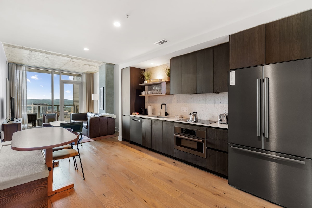 Austin Skyline Luxury: 2BR + Heated Rooftop Pool –