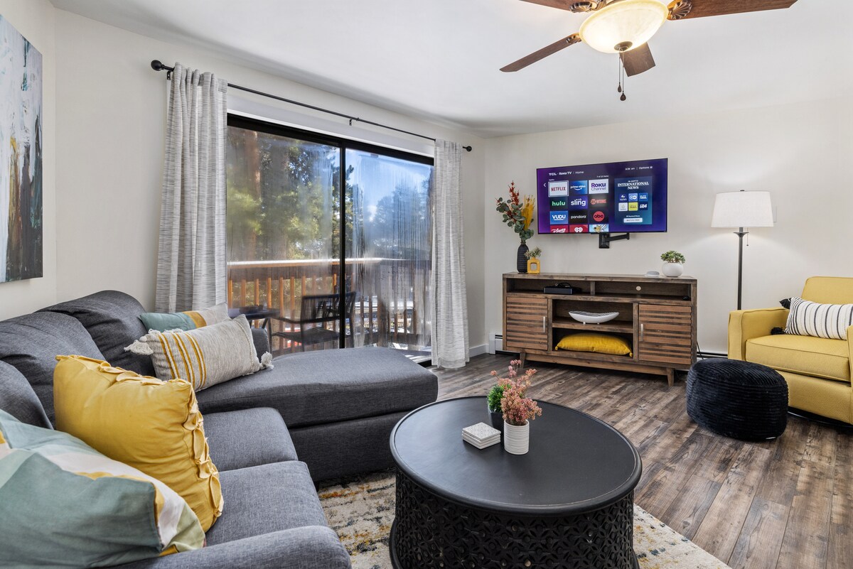 PLEASE NOTE: Pool complex closed April 27th-mid May 2026 Early check in/Late check out not available. Kick back and relax in this calm, stylish space. Our warm and welcoming condo is nestled in a quiet but convenient area very close to lifts and town. Cozy up to the gas fireplace, Relax on the covered deck Adirondak chairs with coffee or a cocktail. Use the provided robes to take an easy stroll to the pool and hot tubs after a day of skiing or hiking. Mountain luxury is just a click away!