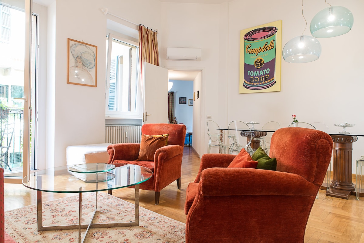 Dompel jezelf onder in de meest prestigieuze artistieke wijk van Milaan met deze luxe studio in het hart van Brera. Het is onlangs gerenoveerd en combineert historische charme met een eigentijds design, met hoge plafonds, natuurlijk licht en iconisch Italiaans designmeubilair. Geschikt voor maximaal 4 gasten met een gemotoriseerd tweepersoonsbed op de tussenverdieping en een slaapbank voor twee personen. Verrassend rustig ondanks de ultra-centrale locatie, op loopafstand van Brera-galerijen, Parco Sempione, Castello Sforzesco en restaurants van wereldklasse.