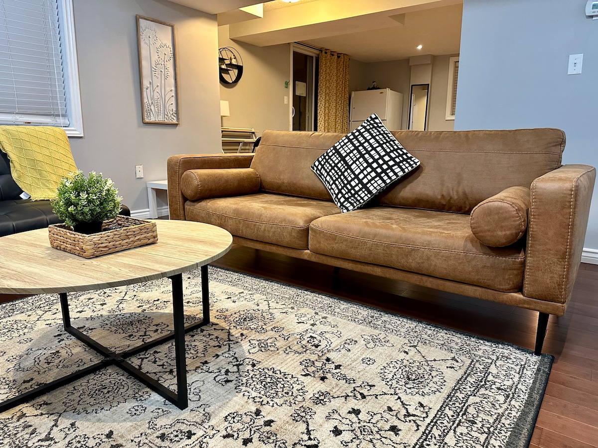 Professionally designed guest suite with open concept layout. The guest suite located on the lower level of our home has a comfortable living space to welcome you and provide an enjoyable and relaxing "Home-Away-from-Home" stay. We live on the main level of the house. Access to the suite is through the shared entrance on the main level of our house. Our property is within walking distance to the "RARE" nature reserve and hiking trails overlooking the beautiful Grand River.