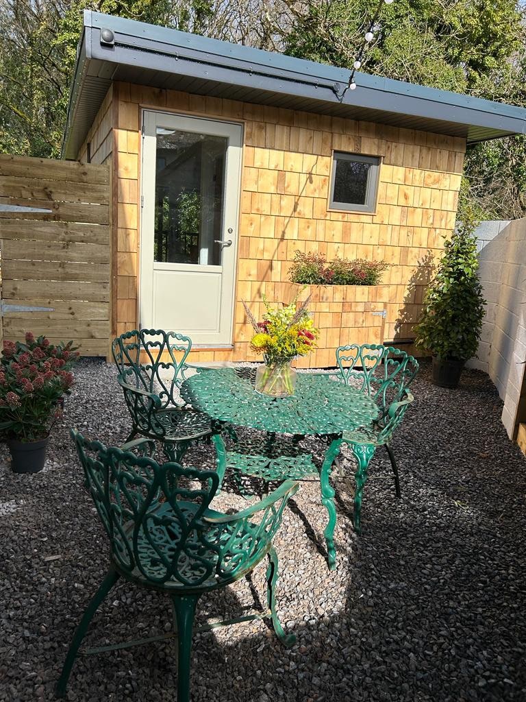 Het houten huisje met privétuin