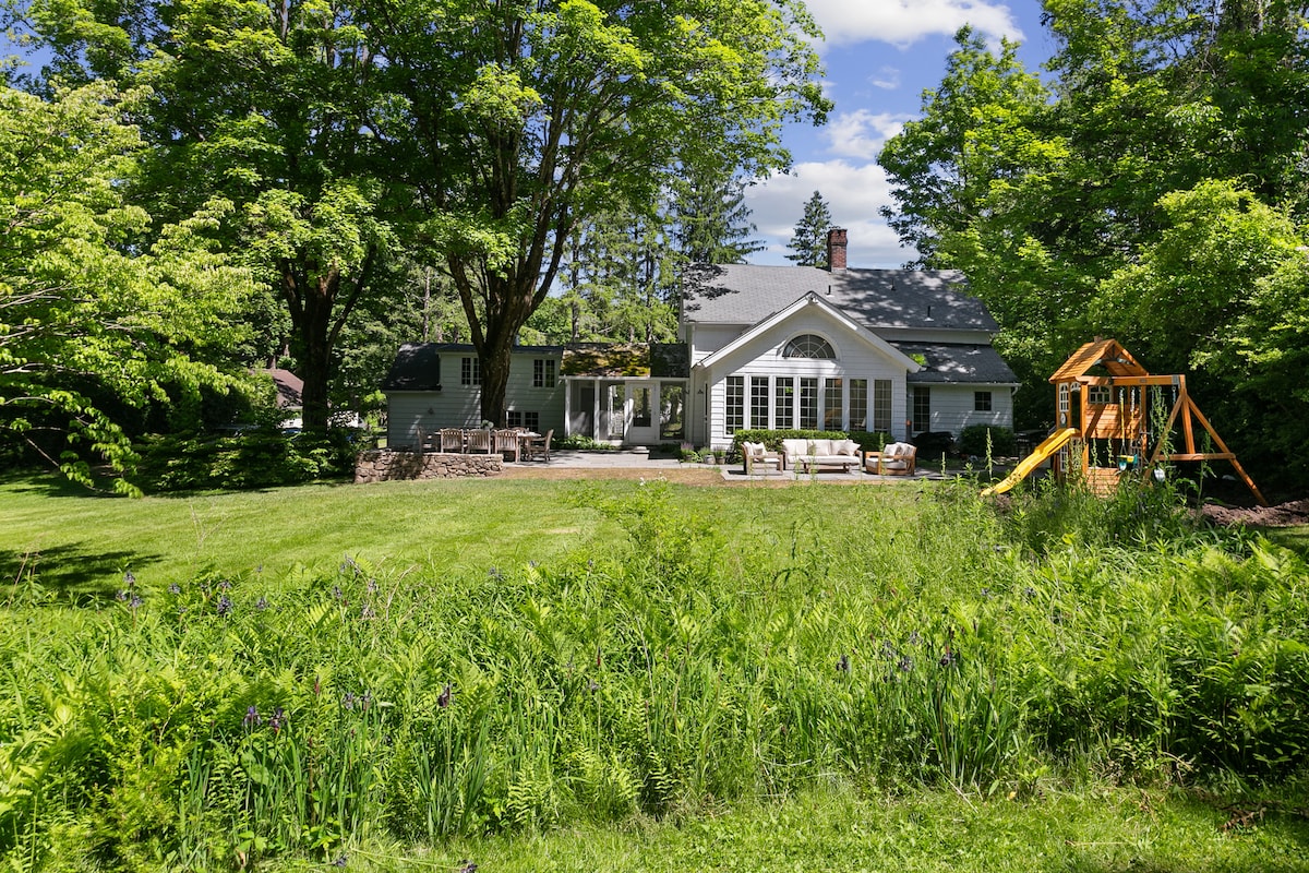 Litchfield County farmhouse (c.1890) with a modern studio addition and distinctive interiors that feature a number of mid-century modern furnishings. The owners are a writer and an architect who have built a truly unique home full of original art and a large book collection. The property itself is small but it is surrounded by 250 acres of farmed conservation land and a short walk will take you past some of the most scenic farms in Litchfield County.