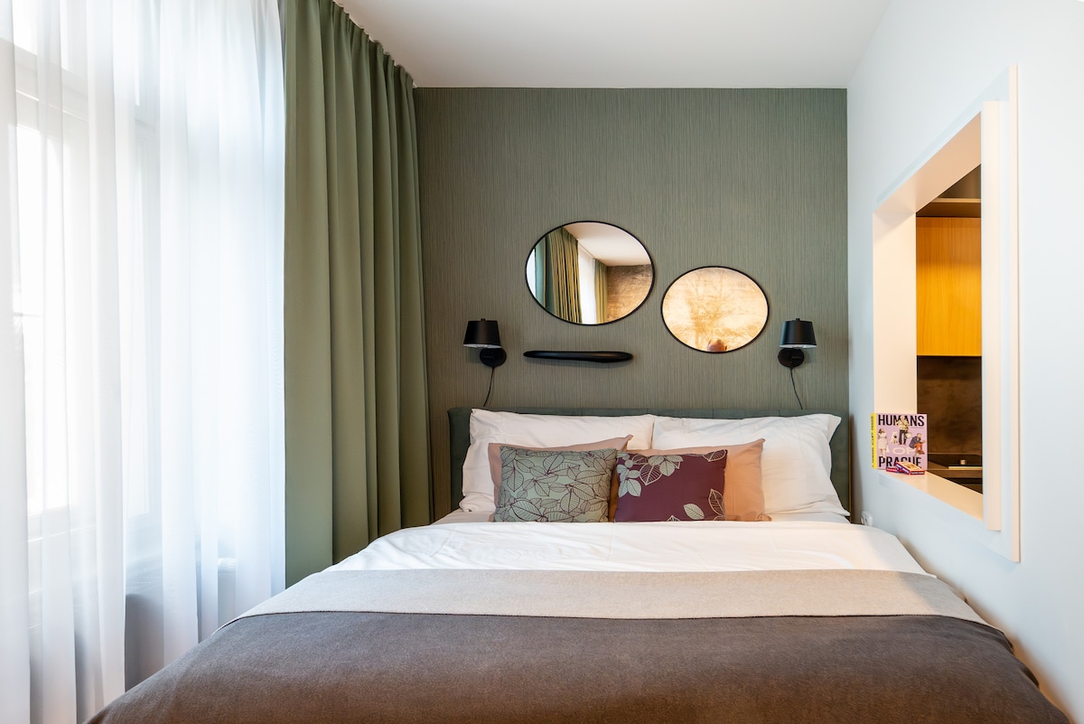 Jay Boutique Studio - Pattern Studios Brno is een schone, moderne studio voor twee met een helder raam over de volledige muur en een strak minimalistisch design. Perfect voor reizigers die eenvoud en functionaliteit waarderen. Een 24/7 receptie en een eigen bakkerij met ontbijtopties voegen gemak toe aan elk verblijf.