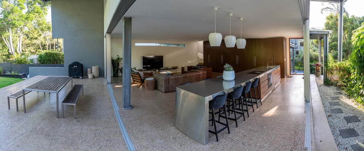 Ontspan in deze op surfen geïnspireerde villa met 3 slaapkamers en 2 badkamers in Palm Beach. Geniet van een kingsize slaapkamer met eigen badkamer, twee queensize kamers, een open woonkamer en een tropische tuinveranda die perfect is voor barbecues. Loop naar het strand, surfbreaks, cafés, bars en toprestaurants zoals Balboa, Costa Taco en The Collective. De luchthaven ligt op slechts 12 minuten afstand. Je gemakkelijke uitje aan de kust wacht op je.