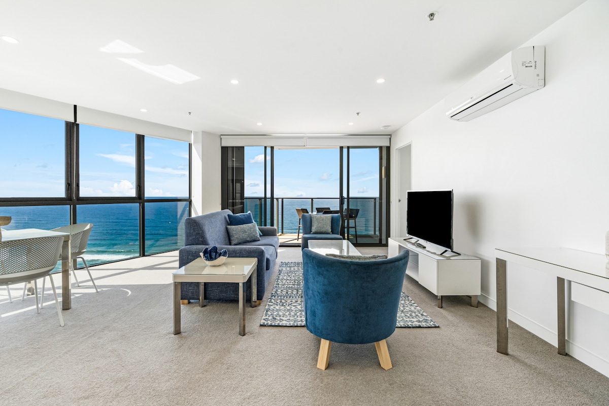 * Veilig - Geen weg over te steken * Airco in elke kamer Ruim appartement met 2 slaapkamers met absolute locatie aan het water, verwarmd lagunezwembad en een panoramisch uitzicht op de oceaan , het strand en de skilijn Surface Paradise. Goed gevulde keuken en koffiepadmachine zorgen voor dineren op het balkon terwijl je geniet van een onovertroffen uitzicht in restaurants ergens anders aan de Gold Coast. Een gezinsvriendelijk appartement met kinderstoel en porta-cot maakt dit ideaal gekozen voor gezinnen en ook voor de meer volwassen vakantieganger.
