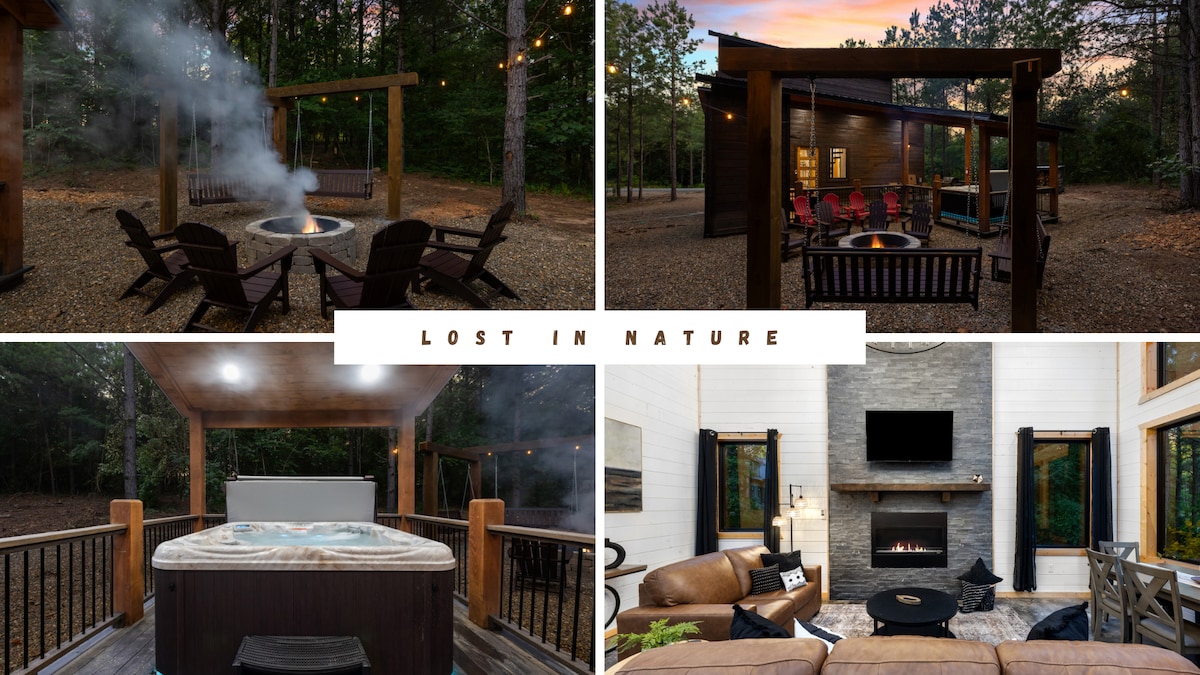 Romantische luxe hut op 1,5 hectare in Broken Bow. Beschikt over een zacht kingsize bed, een extra groot bubbelbad, een dubbele douche in de spa, een bad, open haarden binnen/buiten en een eigen pad. Ideaal voor stellen, huwelijksreizen of kleine gezinnen. Gebouwd in 2022 met open indeling, design slaapbank en high-end afwerkingen. Omgeven door de natuur, maar toch op enkele minuten van wandelen, wijnmakerijen en Broken Bow Lake. Gerangschikt op Airbnb's Favorite, Rare Find en 8x Superhost. Reserveer nu-weekends en topdatums gaan snel.