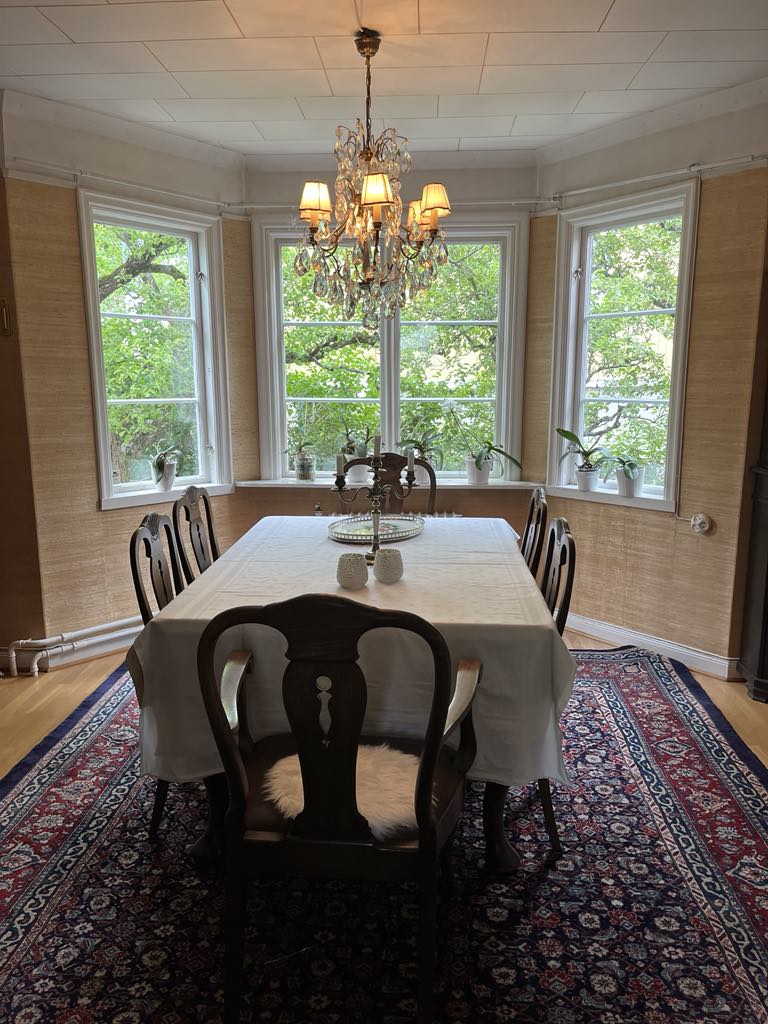 Villa uit de vorige eeuw in het charmante Bromma, dicht bij de metro (Stora Mossen, groene lijn). 15 min naar de T-centralen. Twee verdiepingen, drie slaapkamers, grote badkamer. Volledig uitgeruste keuken, eetkamer voor 8 personen, woonkamer met tv en slaapbank. Heerlijke veranda met uitzicht op de tuin. Grote volwassen tuin – kindvriendelijk! Babybed en -stoel zijn aanwezig. Perfect voor het gezin dat rustig wil verblijven, maar dicht bij de stad.