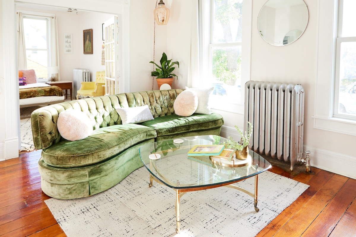 Of dit nu voor een alleenstaande, stel of kleine groep is, je verblijf in dit historische huis zal echt onvergetelijk zijn. Je zult genieten van de MBR-suite met een gashaard, een bubbelbad en een dubbele inloopdouche op maat. Er is een extra zeer mooi volledig bad/douche op de begane grond. De afgewerkte benedenverdieping heeft twee aparte kamers, elk met een hoogwaardige dubbele futon met beddengoed beschikbaar voor je gasten. Voor deze aantrekkelijke prijs zijn de bovenste 4 slaapkamers op slot, maar mogelijk geopend voor meer
