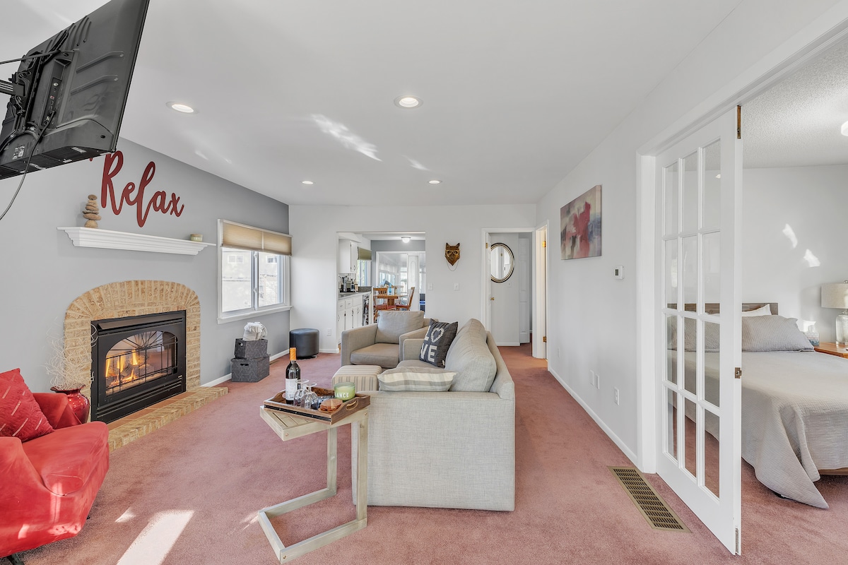 Welkom bij Ann Arbor 's Old West Side! Geniet van een gezellig toevluchtsoord om te ontspannen, te werken of te spelen. Onze eigen ingang, studio/efficiëntie ligt op 1,5 km van het Michigan Stadium (6 minuten rijden/22 minuten lopen) en op loopafstand van bushaltes, winkels, cafés, restaurants, speeltuinen, parken en bosrijke gebieden. Handig voor I-94 of M-14, op enkele minuten van het centrum van Ann Arbor. De ruimte is voorzien van een queensize bed, een dagbed (gebruikt als twee eenpersoonsbedden/kingsize), woon-/eet-/werkruimte en een volledige, grote badkamer. Familie/LGBTQ-vriendelijk.