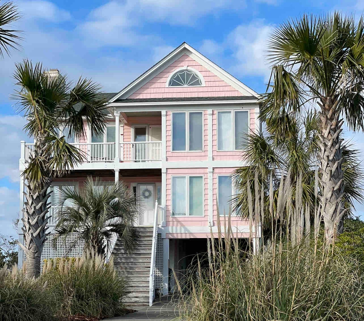 Ons prachtige strandhuis aan de West End van het eiland Holden Beach is buiten het seizoen beschikbaar met een minimum van drie nachten en wekelijks van Memorial Day tot Labor Day. We kunnen tot 7 personen slapen met 4 slaapkamers en ons huis heeft een onovertroffen uitzicht op de Intracoastal Waterway, het moeras en de oceaan. Dit einde van het eiland is slechts twee woningen diep en de toegang tot het strand ligt aan de overkant van de straat. Er is een poort met een code voor dit uiteinde van het eiland, en daarom is het autoverkeer erg laag.
