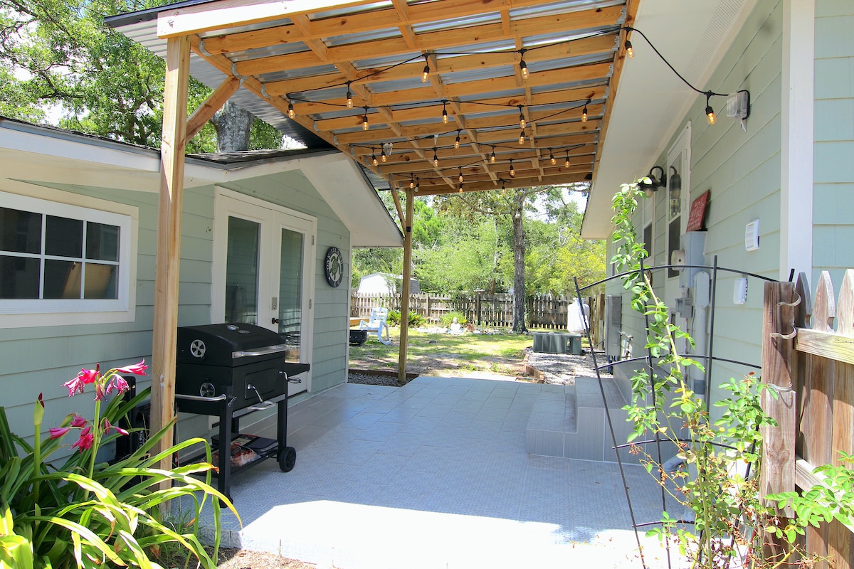 Het House of Zen is een charmant strandhuisje op enkele minuten van de stranden van Oak Island. Ontspan bij de buitenvuurplaats in een OMHEINDE achtertuin die ideaal is voor je kinderen en huisdieren! De toegang tot het strand is een gemakkelijke rit, wandeling of fietstocht. We hebben fietsen, strandstoelen, gazonspellen en een buggy om de reis naar het strand gemakkelijker te maken of dichte parken en restaurants te bezoeken. Het vrijstaande gebouw, Zen Den, heeft een slaapkamer en een kantoor voor diegenen die een afgelegen werkplek nodig hebben voor een langer verblijf!