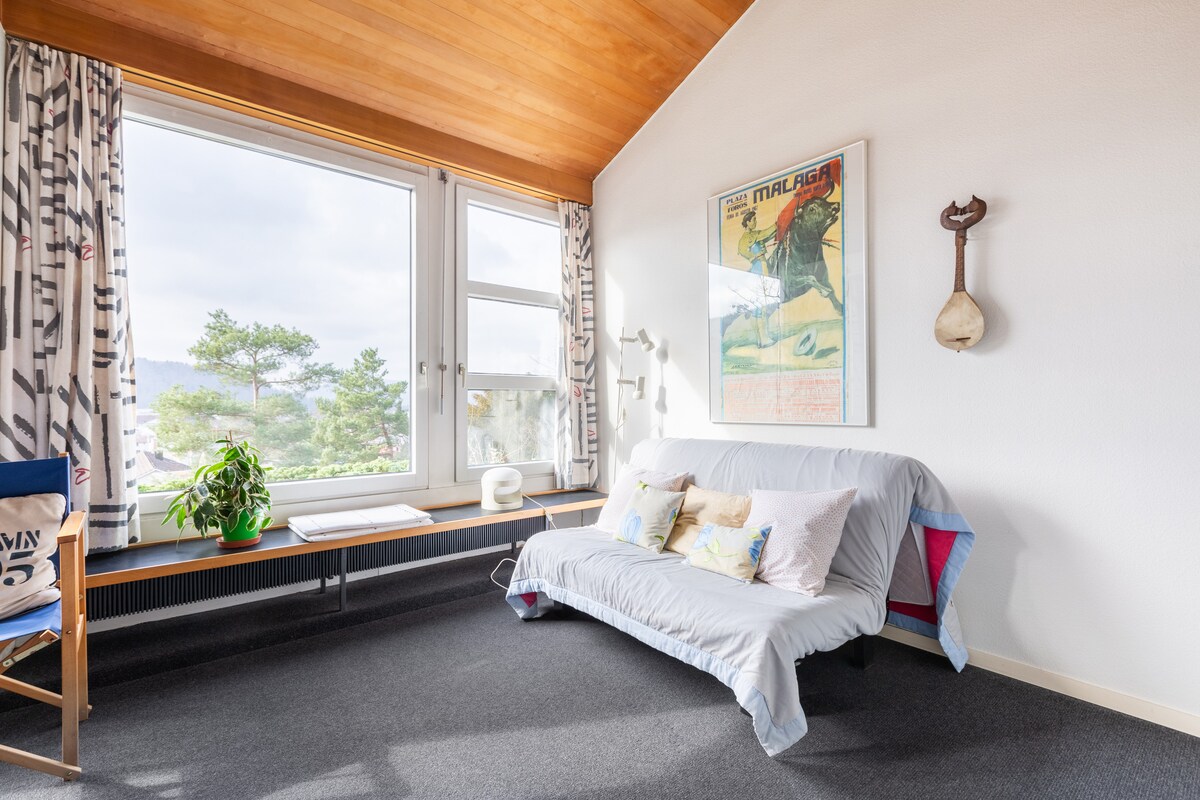 De woonstudio met volledig uitgeruste keuken, is gelegen in het onderste deel van ons huis, genesteld in een rustige vrijstaande huisbuurt. In 5 minuten ben je bij de bushalte. Zürich - Stad, Luchthaven en Winterthur zijn met het openbaar vervoer in 25 minuten te bereiken. Ideaal werk en toevluchtsoord, goed functionerende wifi voor thuiskantoor. Langetermijnverblijven mogelijk. Gratis parkeren voor het huis, winkelfaciliteiten 400m, restaurant op loopafstand.
