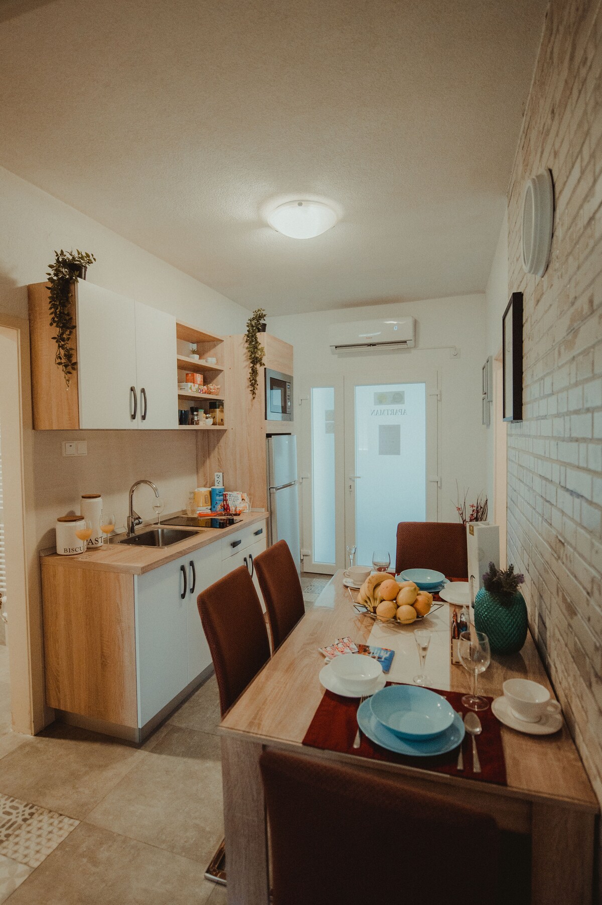 Een nieuw ingericht dubbel huis in het rustige dorp Beravci. U heeft een eigen parkeerplaats en een ruime tuin, ook ingericht met veel fruitbomen en bloemen. Binnen het huis is er veel groen, een ruime woonkamer met een slaapbank (140x166), een kamer met een bed van 180x200 cm, een keuken met alles wat je nodig hebt voor een ontspannen vakantie en een badkamer. Een echt paradijs om te ontsnappen aan de drukte van de stad en toch op een uur rijden van culturele bezienswaardigheden.