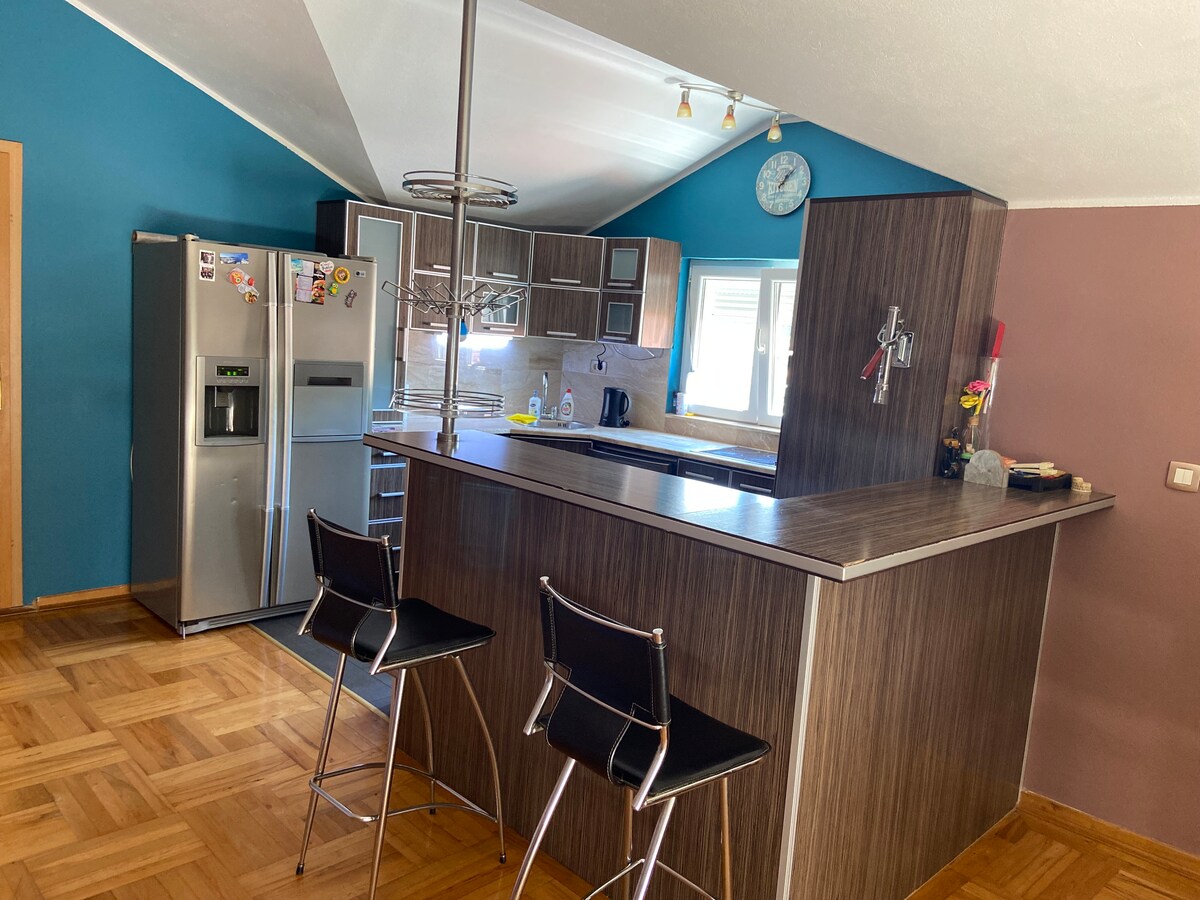 Wij bieden u een prachtige loft gelegen in de wijk Brežine in Petrovac. Geniet van het prachtige uitzicht vanaf het ruime balkon en de gemakkelijke toegang tot twee zanderige (website verborgen) is buurt met goede diensten en het is geschikt voor uw vakantie!