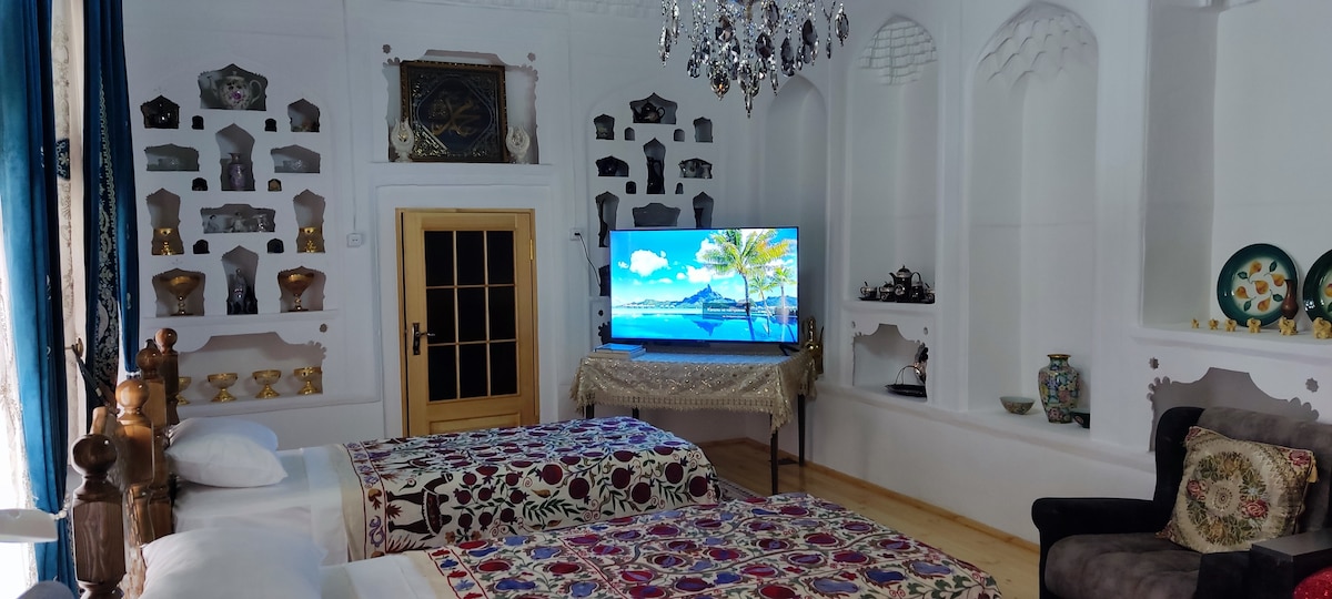 Quiet Accommodation in the Center of a Tourism Destination. Close to the main attractions such as: Zindan (19th century), Ark Fortress, Kalon Minaret, Miri Arab Madrasah and other 30 historical sites. Due to the fact that the object is close to the ancient sites, you do not need to spend hours getting to them by taxi or on foot, wasting time and money The room has its own inside bathroom with toiletries, a wardrobe, comfortable beds with orthopedic mattresses and convenient lockers.