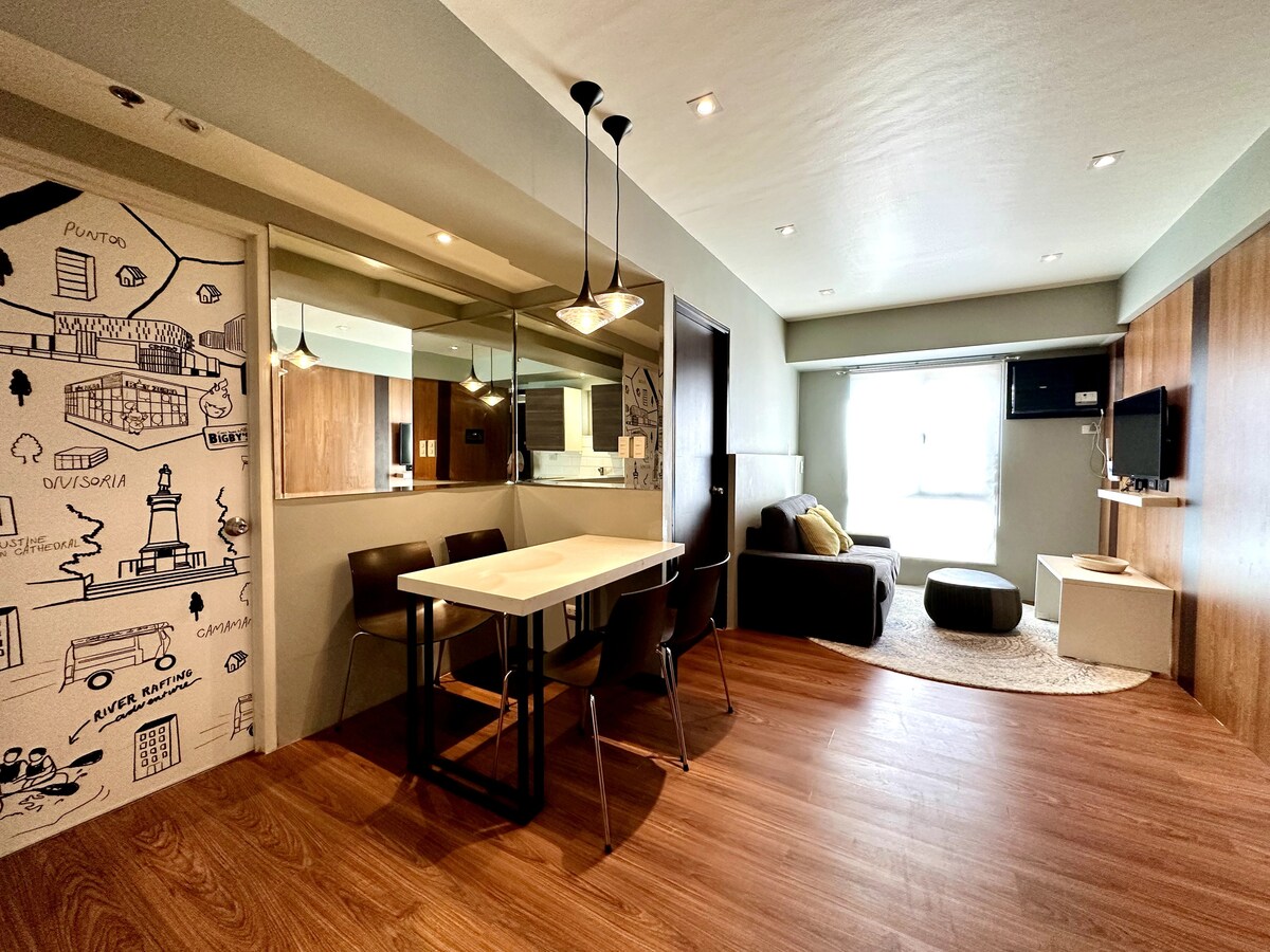 Pool access for 2, Walking distance to 4 major malls in the city, Disney+ & Netflix, High-speed internet perfect for work & leisure, Voice-controlled lights, AC & TV. Welcome to your smart warm minimalist studio in MesaVerte Residences. Stay connected with fast internet for remote work, unwind with endless entertainment, and enjoy a cozy retreat just steps from nightlife, dining, and shopping.