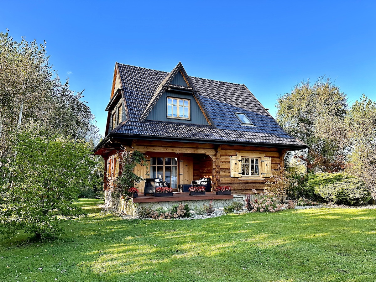 "Sękata chata" - een houten huis met een jacuzzi