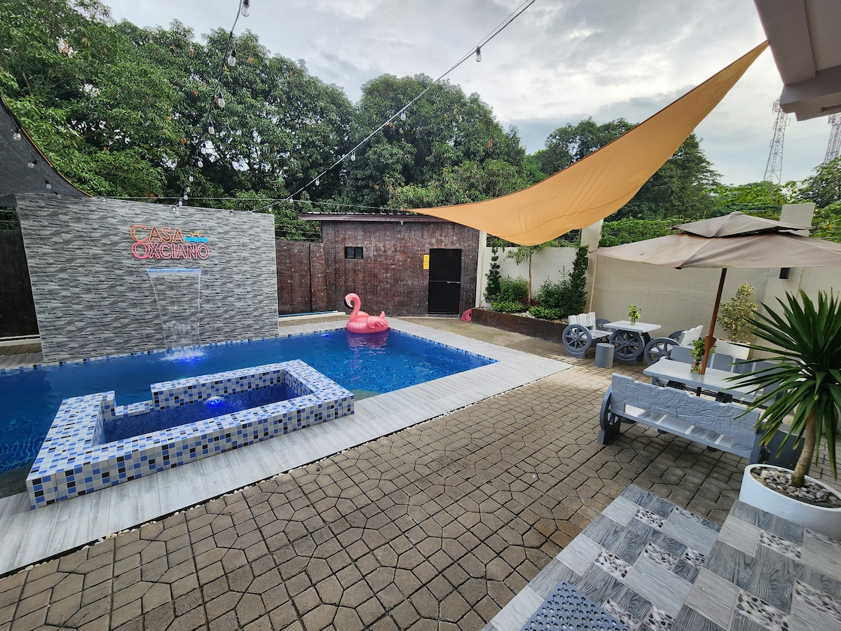Geniet van een rustig, gezinsvriendelijk toevluchtsoord in Casa Oxciano! 😊 Maximaal 50 personen (25 slaapplaatsen) 🏊♂️ Zwembaden (3ft-5ft diepte) + kinderzwembad 🏠 2 kamers met airconditioning, eigen badkamers 🍽️ Basiskeuken 📶 Gratis wifi 🏓 Tafeltennis 🎱 Biljart 🃏 Kaart- en bordspellen 🎤 Videoke (ALLEEN tot 22.00 uur) 🚗 Omheinde parkeerplaats (7-10 auto's) 🎥 CCTV 🎮 PS4 Arcade (niet gratis/muntgokautomaat) 🏀 Basketbal (neem je eigen bal mee) 🚗 Parkeren tot 10 auto's 🐶 Max. 2 huisdieren toegestaan