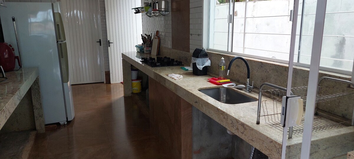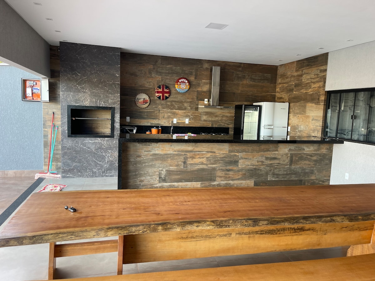 Rancho Fiel biedt je een buitengewone ervaring met een totale oppervlakte van 133 m2 geïntegreerd met een gastronomische keuken en pooltafel, perfect om van het moment te genieten en te barbecueën met je groep! Je hebt een luidspreker, beeldprojector, wifi, industriële houten tafel voor 12 personen, ruime kamers en een van de beroemdste meren in Goiás, toegang tot het meer via de gemeenschappelijke hellingen. Het huis ligt op ongeveer 500 meter van het meer! Welkom bij Rancho Fiel!