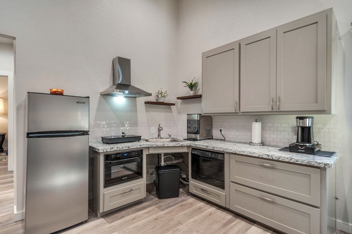 Our stylish studio retreat at Baseview Landing, your home away from home while staying in Wichita Falls. Experience elevated comforts in a peaceful gem of an apartment complex across the street from Sheppard Airforce Base. This studio boasts a thoughtful layout, featuring a comfy queen-sized bed, fully equipped kitchen, complementary whole bean coffee bar, usage of laundry room, and other perks. Whether you're visiting for business, academics, or a long getaway, we hope you choose us as hosts.