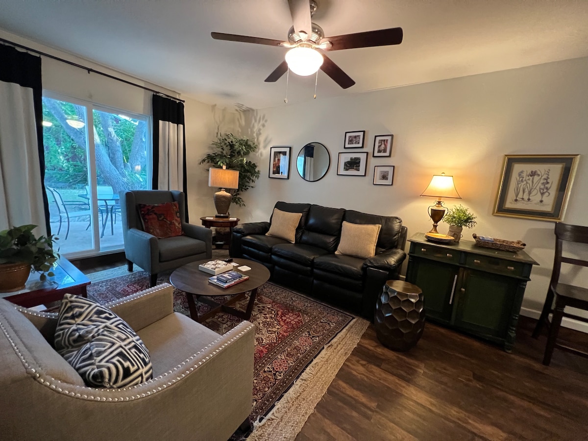 ♥️Howdy House Bryan ♥️Is een kleurrijk modern herenhuis in Aggie land. Wij zijn College Stations beste Airbnb voor Texas A&M-spellen! Ons handige moderne herenhuis ligt op 1 blok lopen van het historische centrum van Bryan en op slechts 10 minuten van Kyle Field! We hebben: 3 comfortabele bedden, 1 kingsize bed en een tweede uitschuifbaar bed, (een bank beneden ook) een omheinde achtertuin en 2 55-inch streaming-tv's. Het historische centrum is een foodie JUWEEL! HowdyHouseBryan is jouw plek voor uitstapjes voor meisjes of speeldagen!